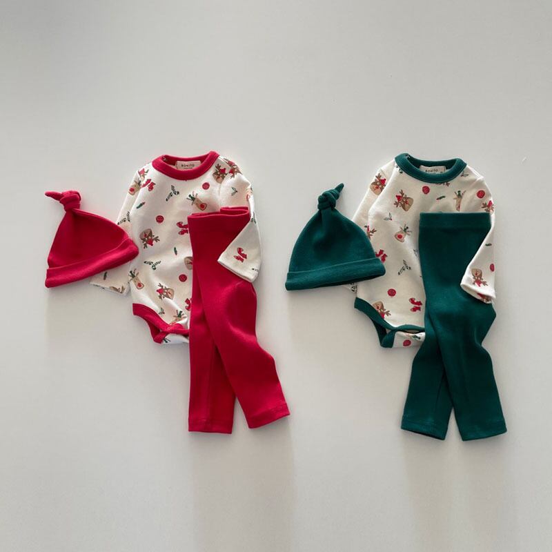 【海外からの取り寄せ】ins 秋冬新作 ベビー服 部屋着 クリスマス 3点セット 帽子 長袖ロンパース パンツ ルームウェア #[ckd1091265_18600]【送料込み】【250513】