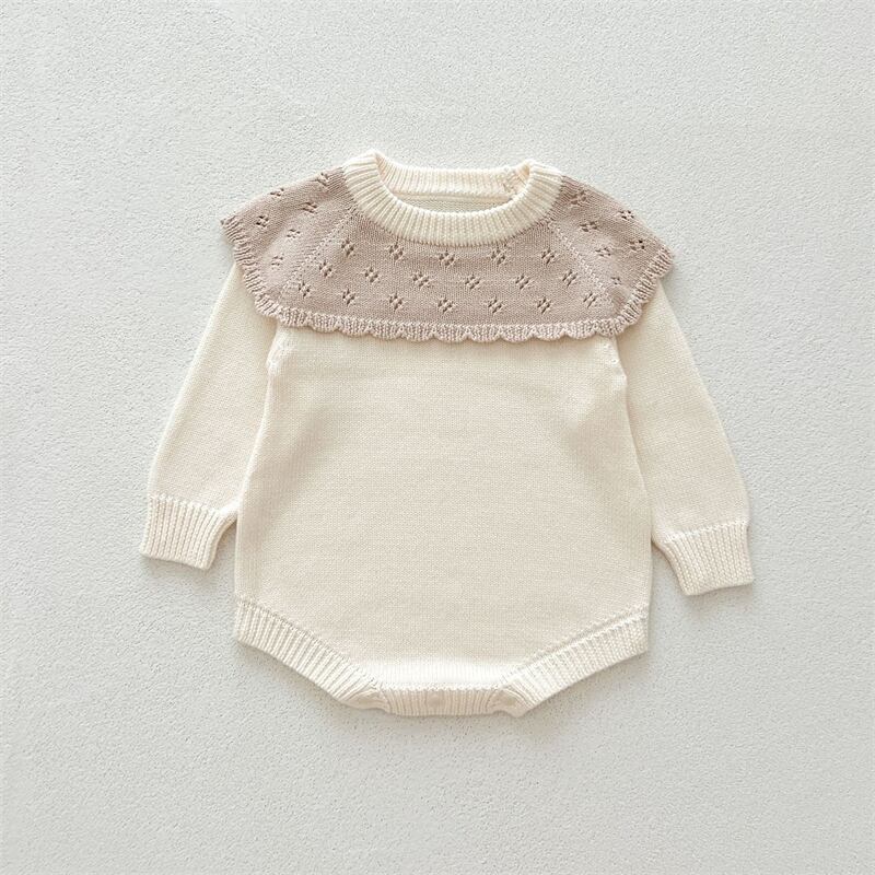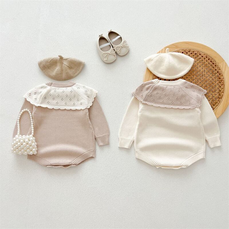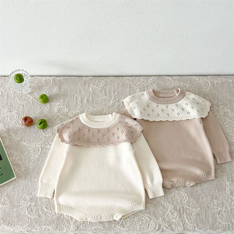 ins ラッフルカラー 韓国子供服 可愛い ロンパース セーター 普段着 カバーオール 春 秋