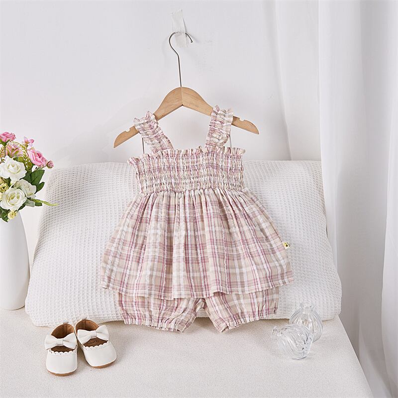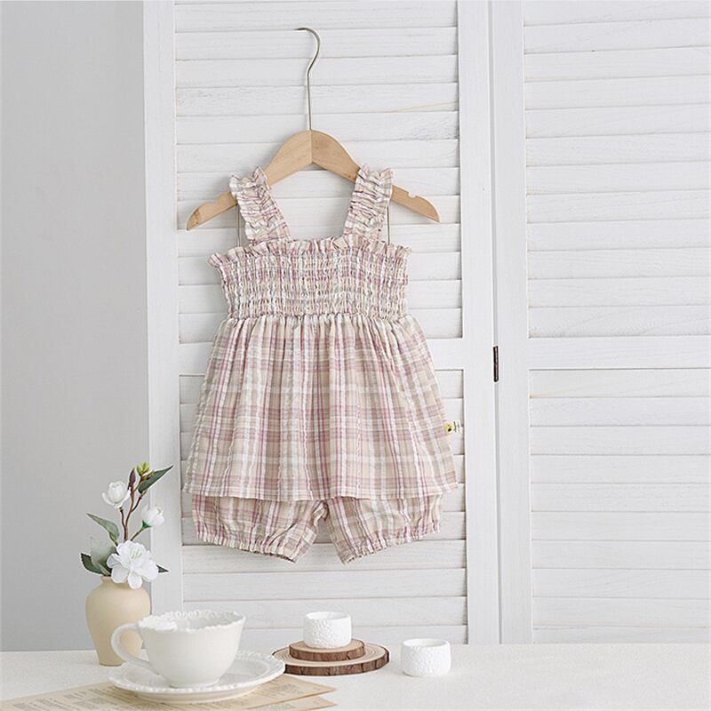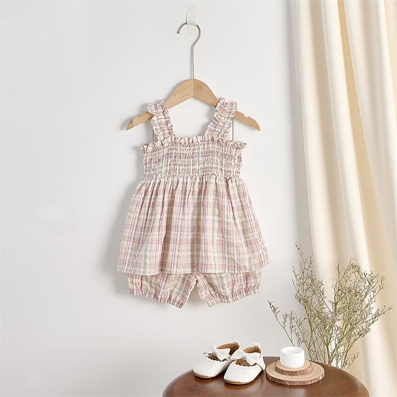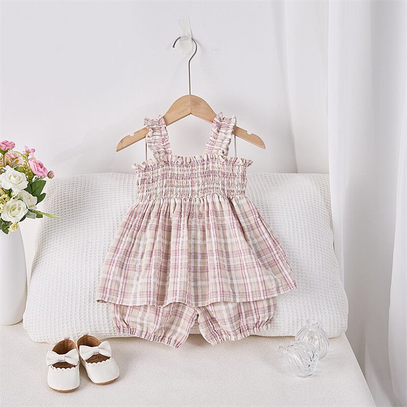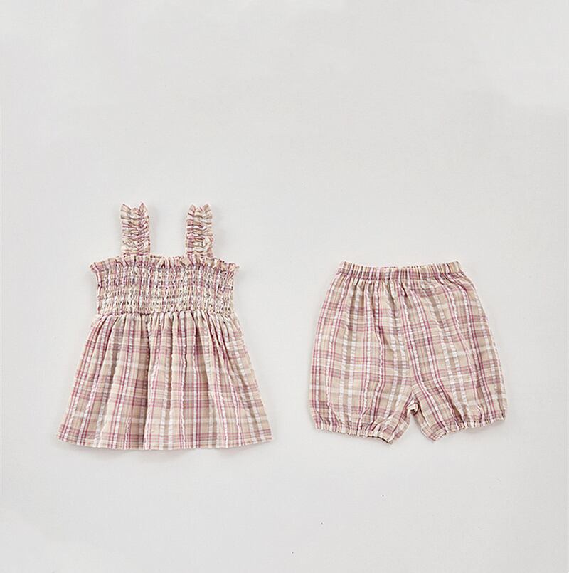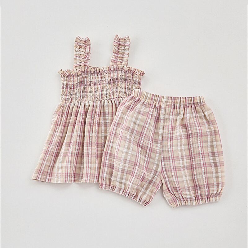 【海外からの取り寄せ】2025夏新作 女の子 格子 セットアップ キャミソール ショートパンツ 子供服 可愛い おしゃれ #[ckd1094608_15400]【送料込み】【250531】