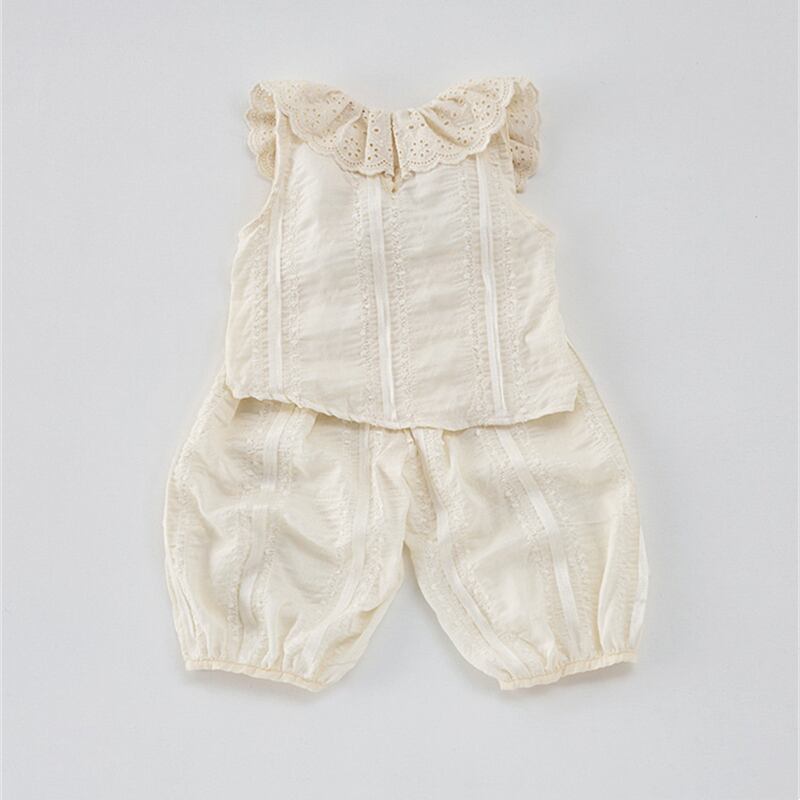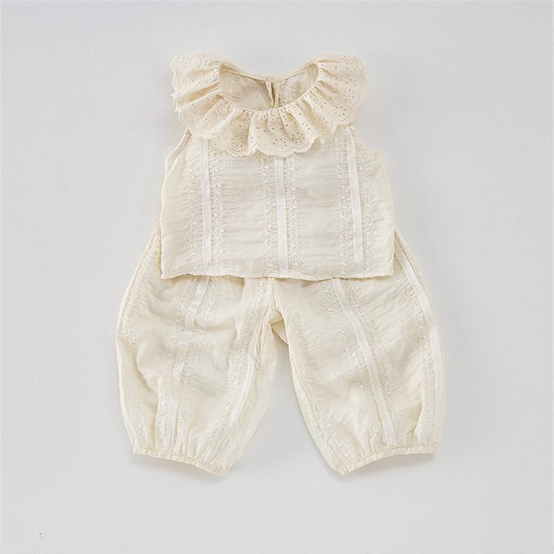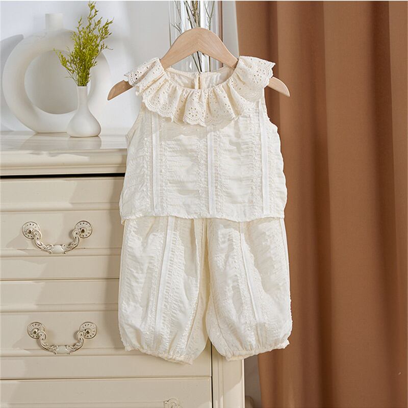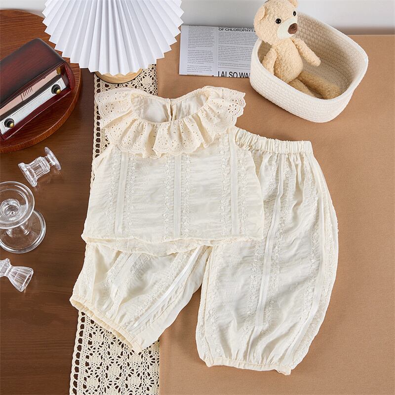 【海外からの取り寄せ】2025夏新作 女の子 レース ラッフルカラー セットアップ ベスト ロングパンツ 子供服 可愛い #[ckd1094606_17000]【送料込み】【250531】
