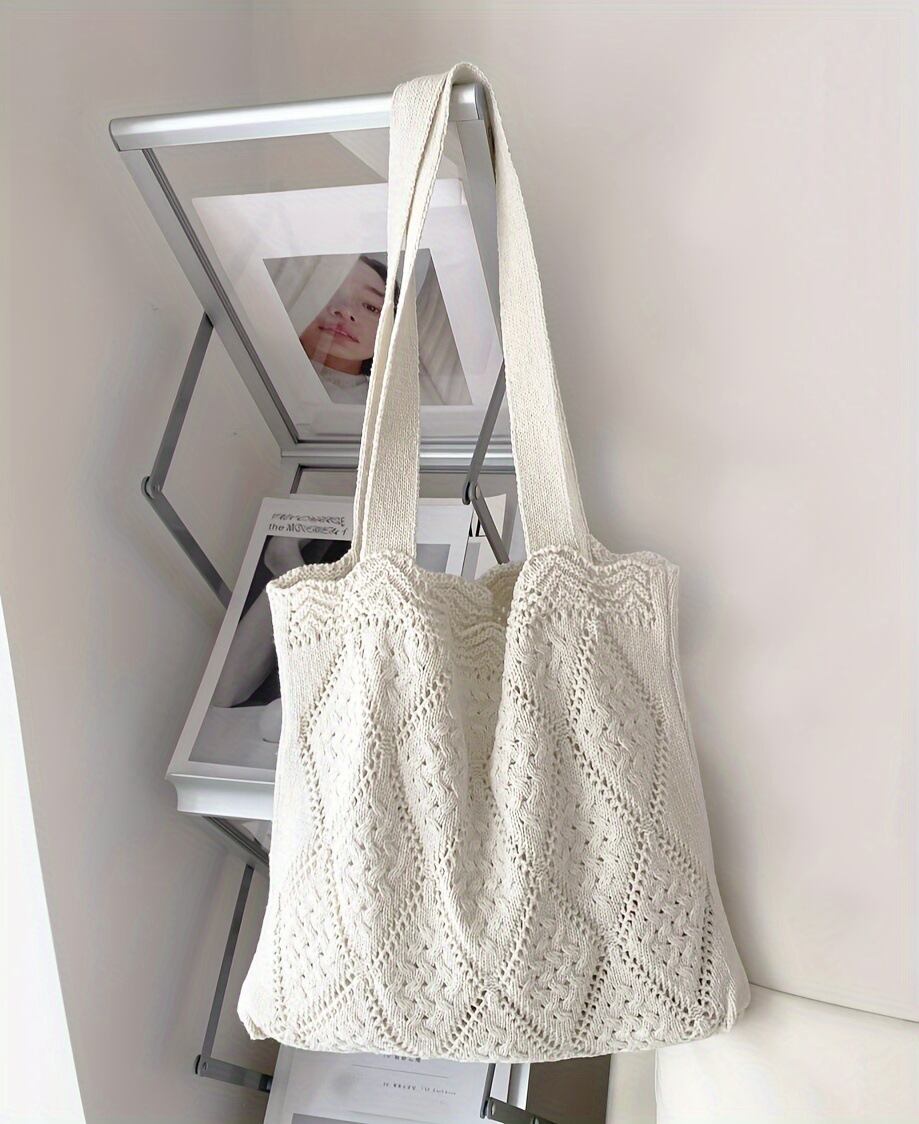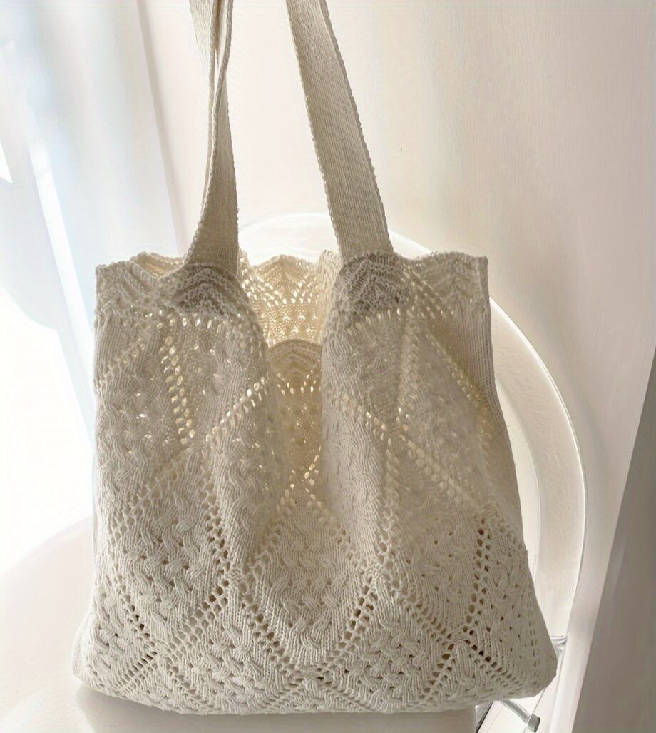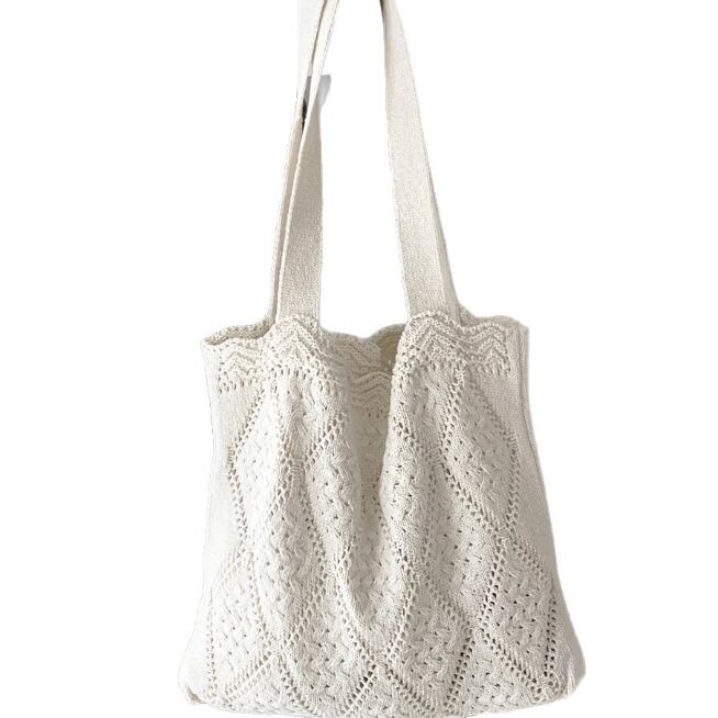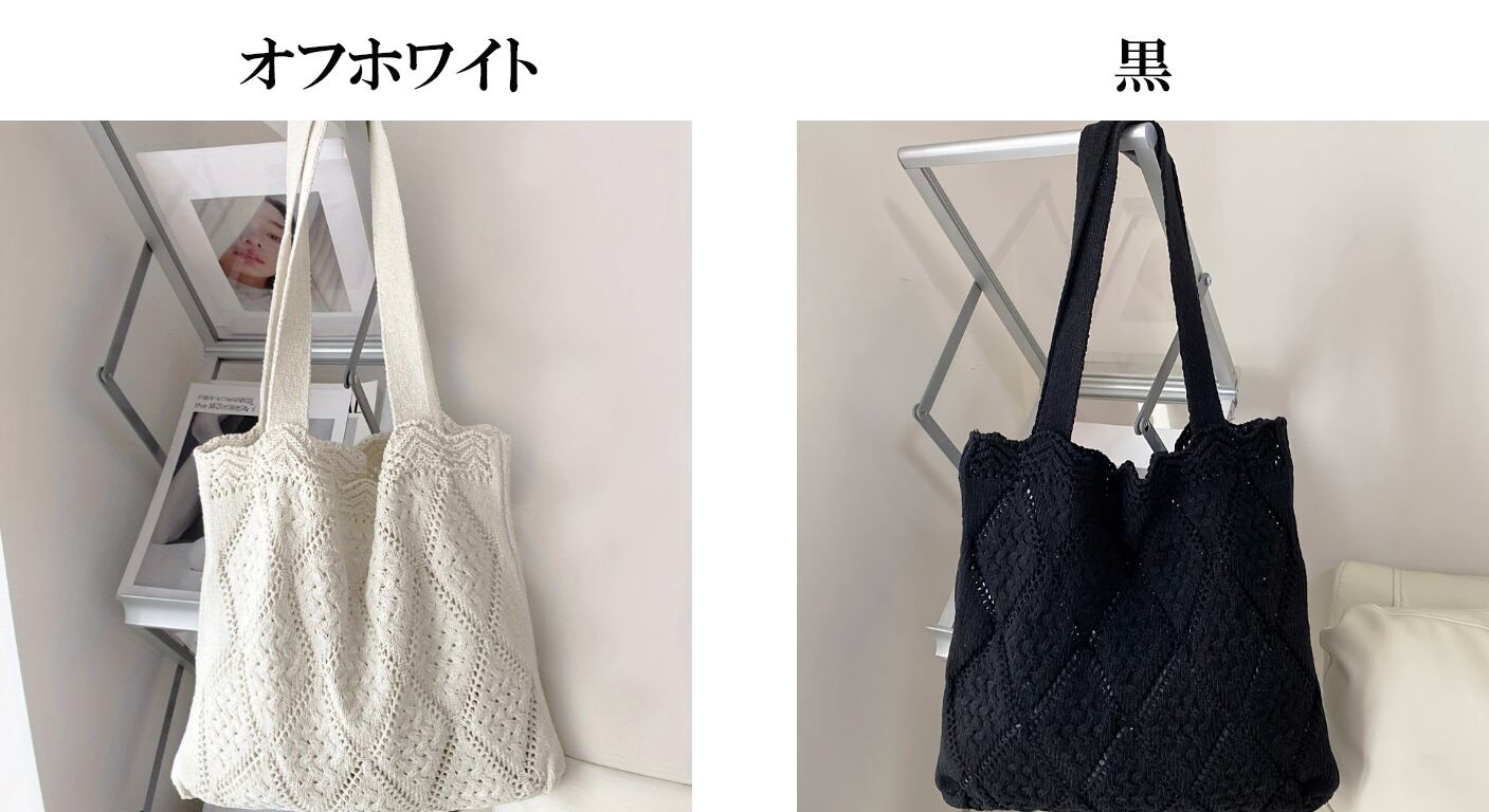 ・A4サイズも収納可能な大容量タイプ、普段使いでも差し色アイテムとしても大活躍の透かし編みニットバッグ。