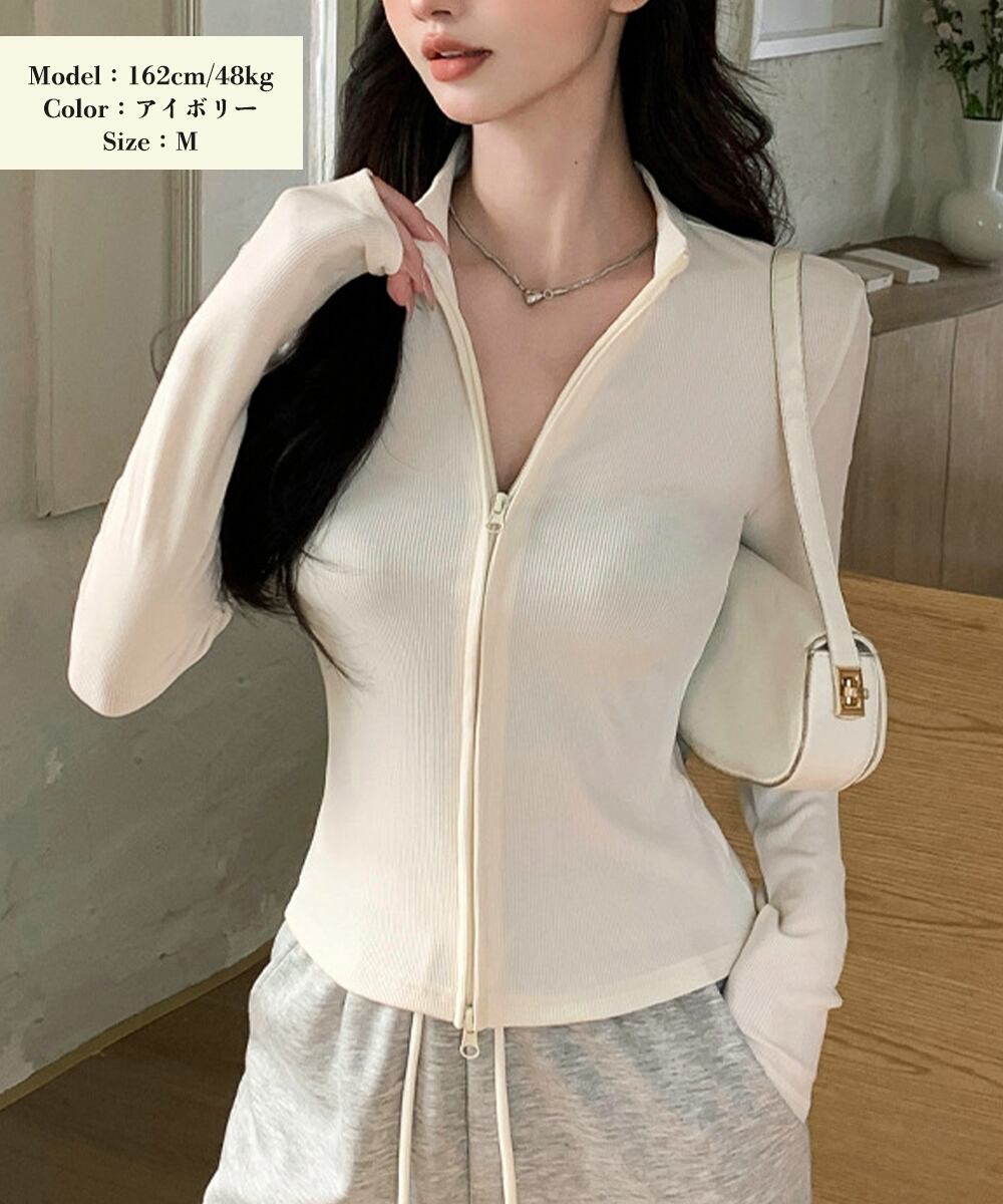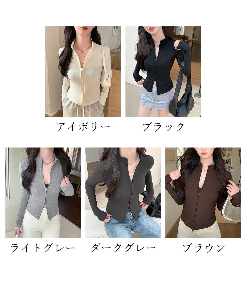 【日本倉庫からの発送】 カーディガン リブトップス ダブルジップ #[99EZFZ-007_19000]【送料込み】【250514】