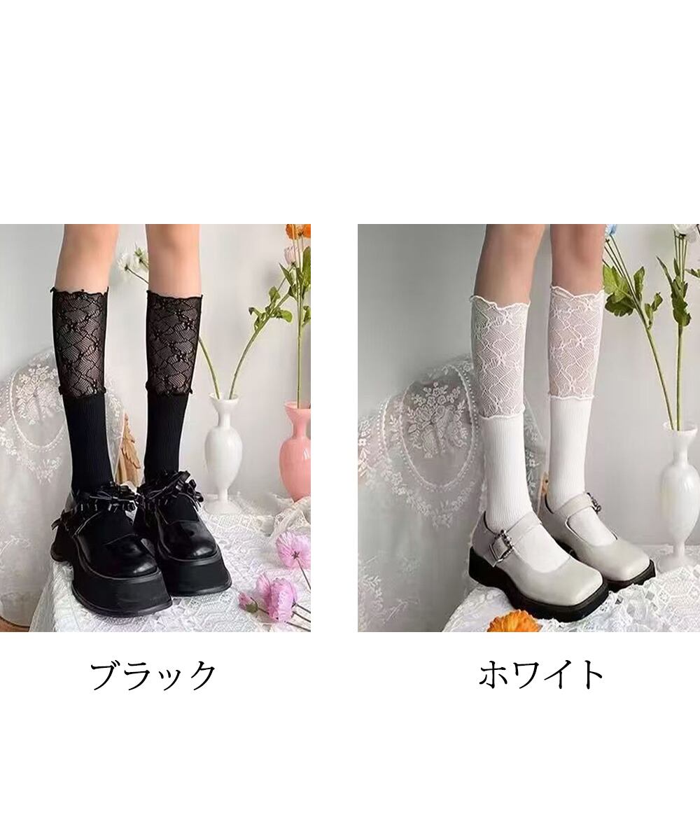 ひざ下丈ソックス 春夏秋 レースドッキング 大人可愛い 花柄レース 脱げにくい 通気性レッグウェア靴下 通勤通学婦人靴下