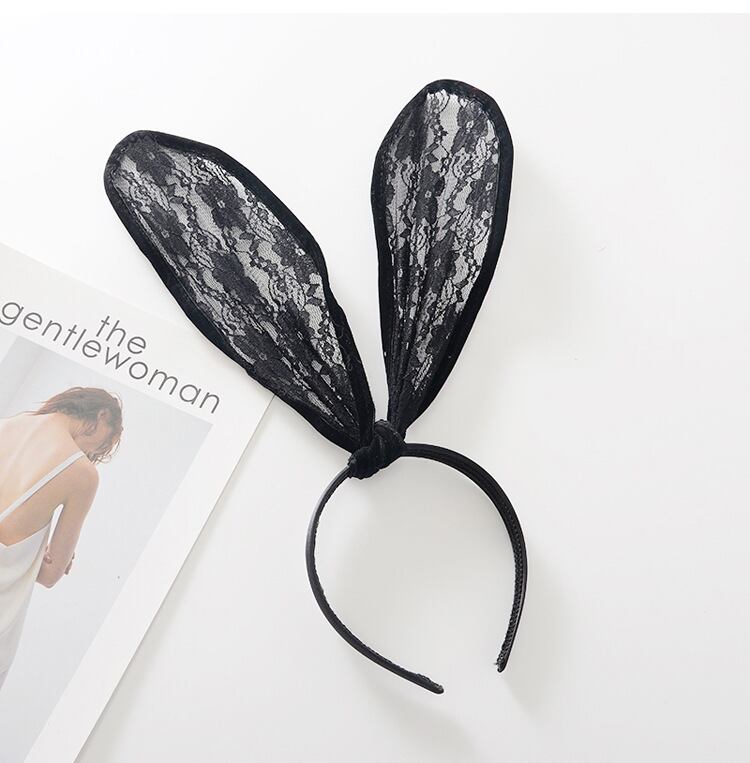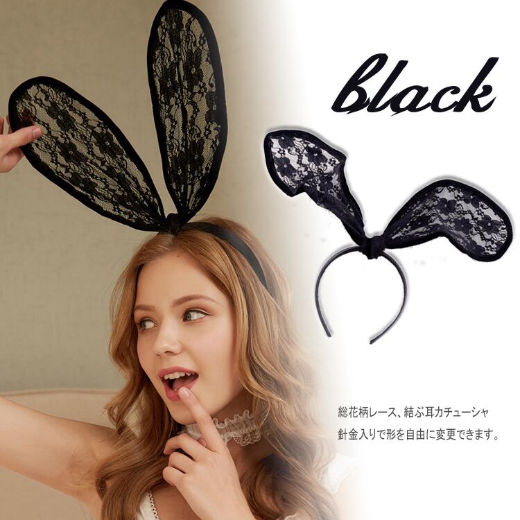 【即日出荷】黒 結ぶ耳カチューシャ 花柄レース コスプレ小物【 #[9106_5500]】【送料込み】【251029】