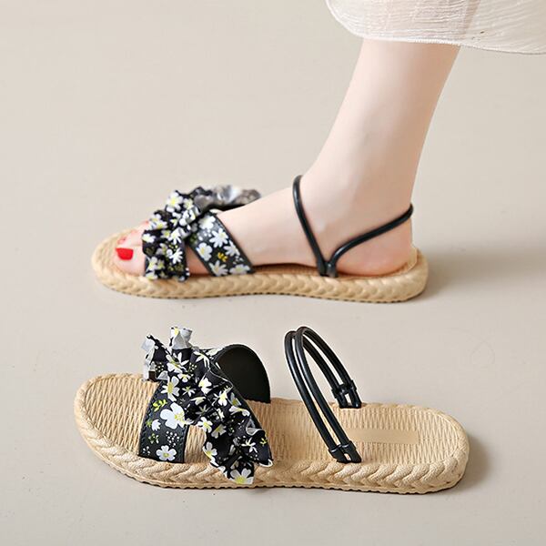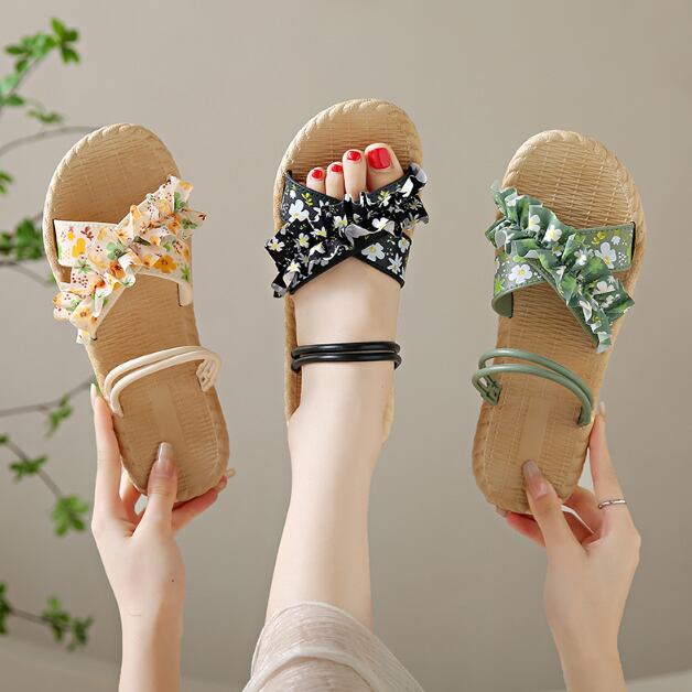 華やかなフリルが目を惹く 花柄サンダル
