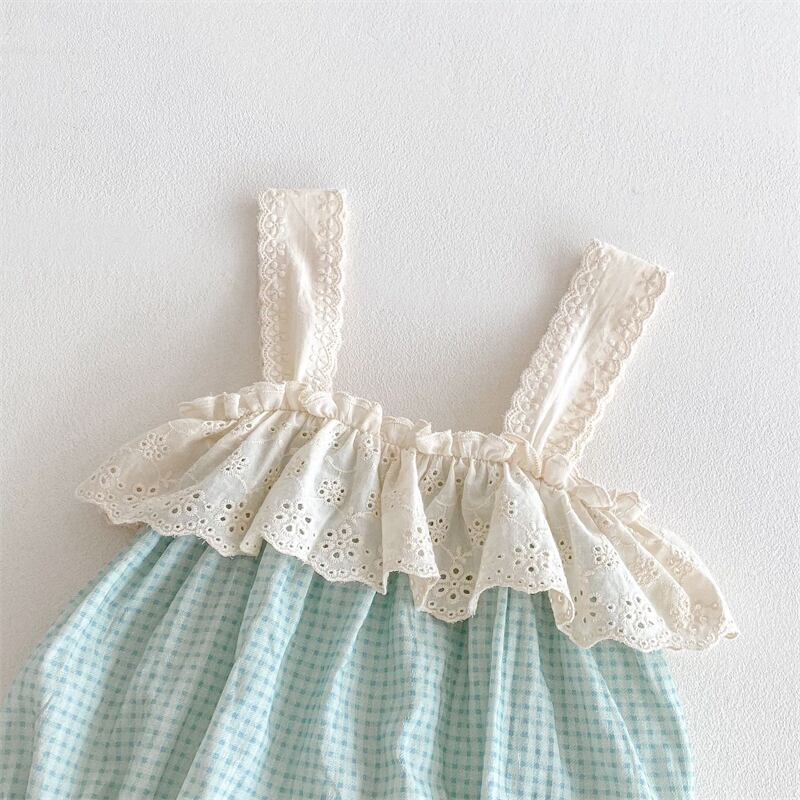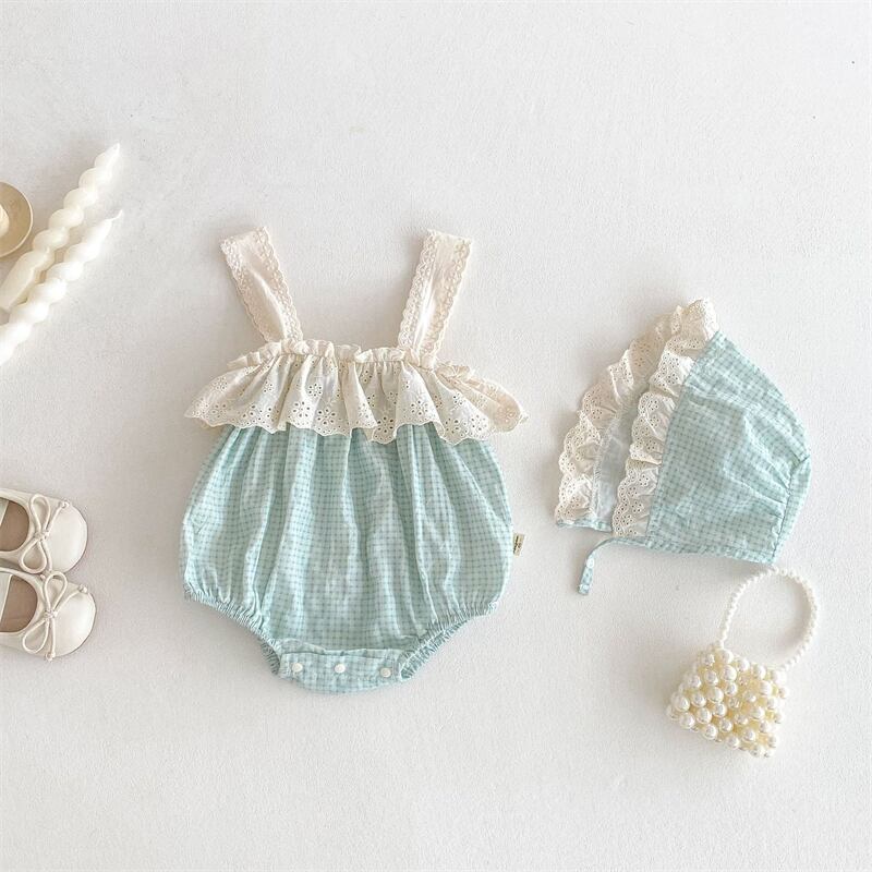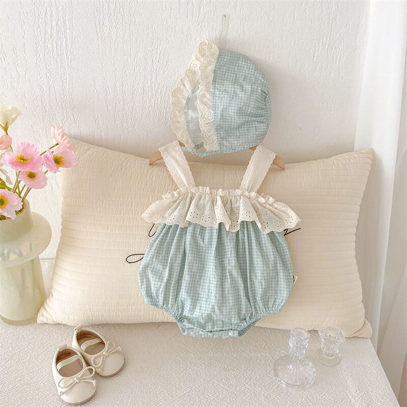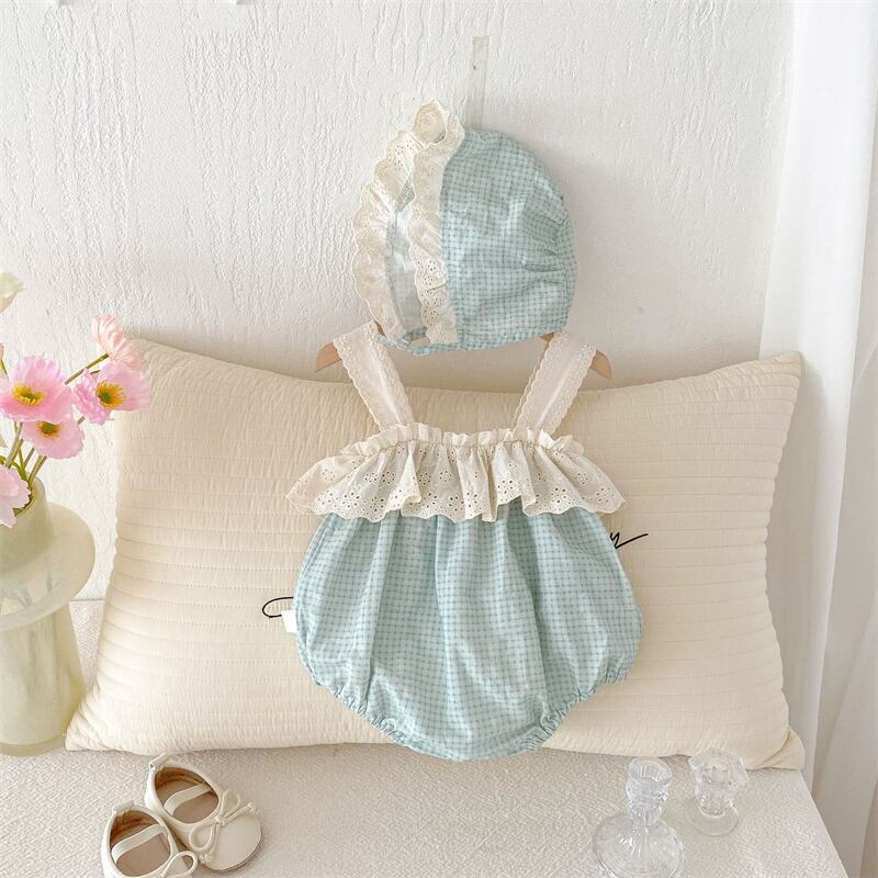 【海外からの取り寄せ】2025夏新作 ベビー服 女の子 帽子付き レース サロペット 格子 ロンパース 可愛い 新生児 子供服 #[ckd1094619_14100]【送料込み】【250605】