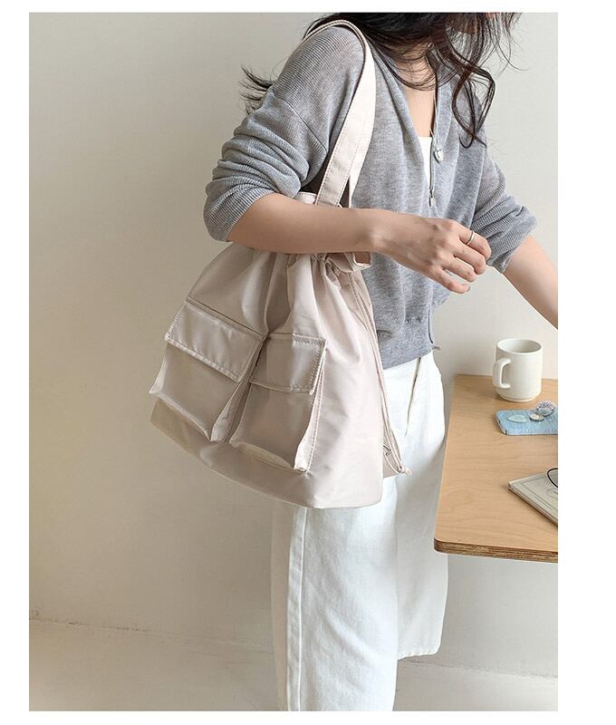 ・収納力抜群のポケット設計で、スマホ、財布、ボトルなどをすっきり整理。