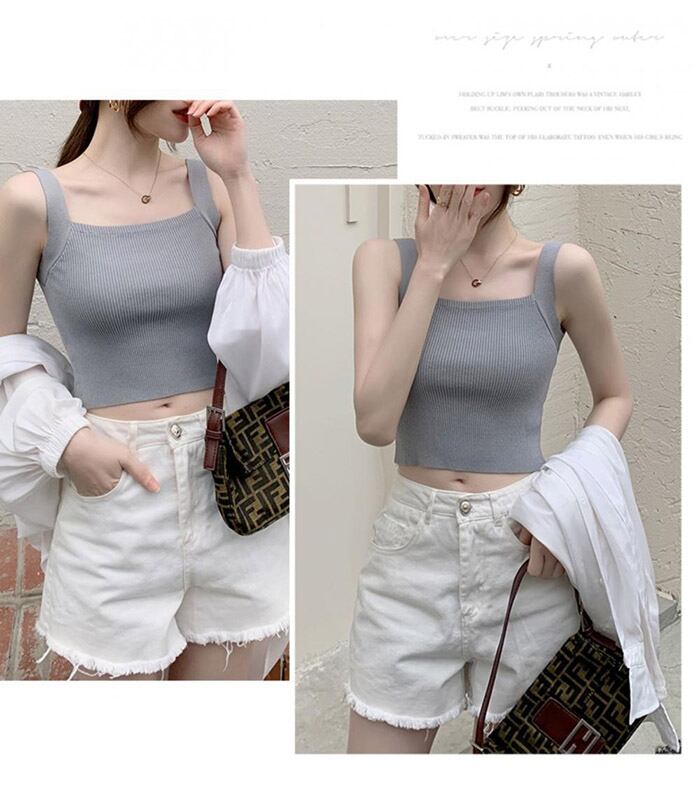 ・ クロップド丈:ハイウエストボトムとの相性抜群。スタイルアップ効果あり。