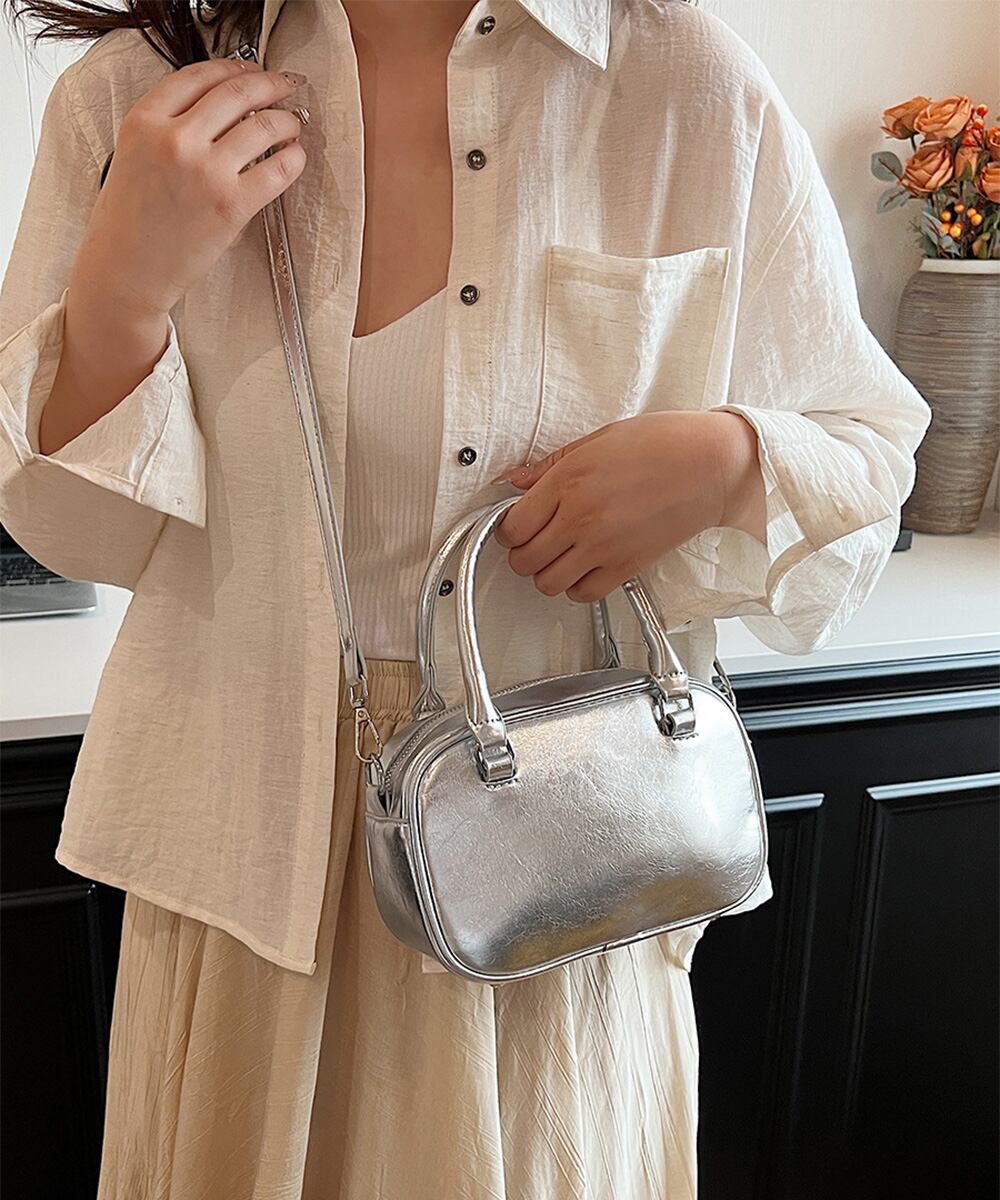 光沢感のある目を惹く、ミニサイズのハンドバッグ