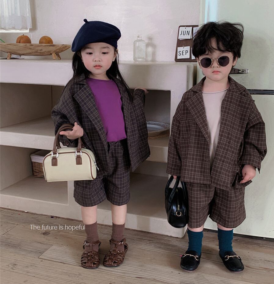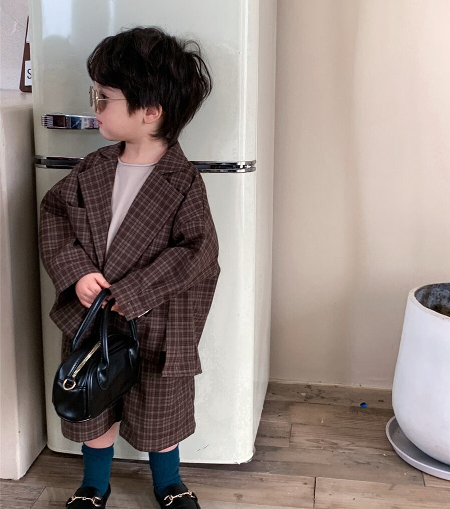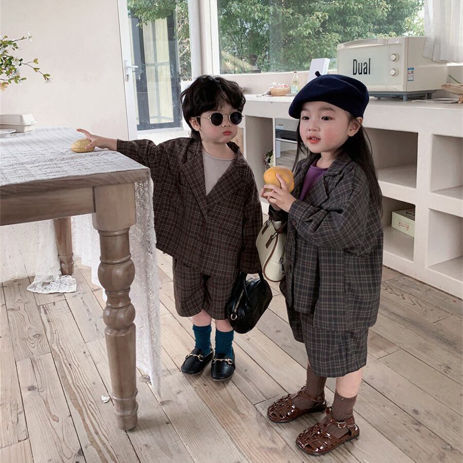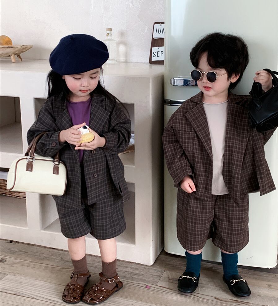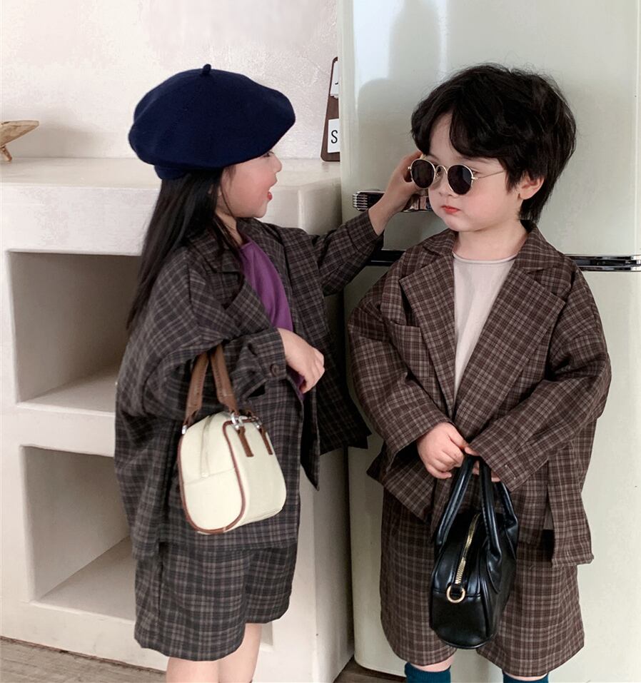 【海外からの取り寄せ】ins 秋新作 韓国風子供服 スーツ セットアップ チェック柄 ゆったり 子供服 カジュアル 2点セット #[ckd1091498_29800]【送料込み】【250924】
