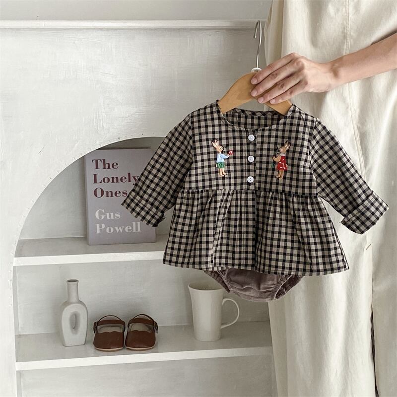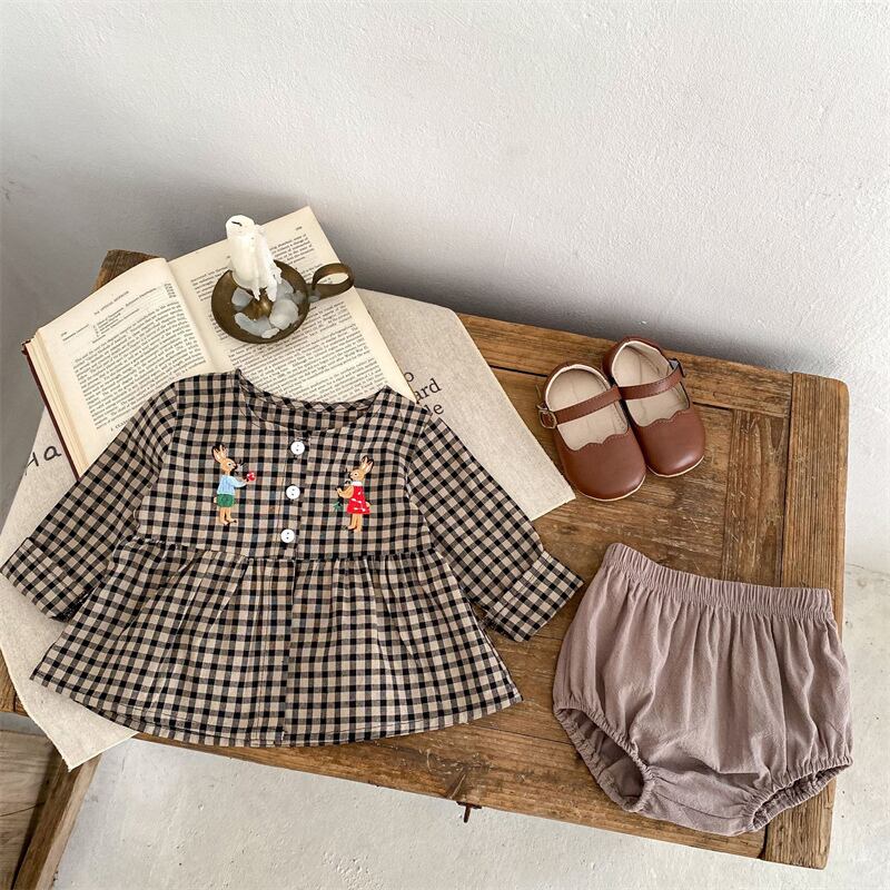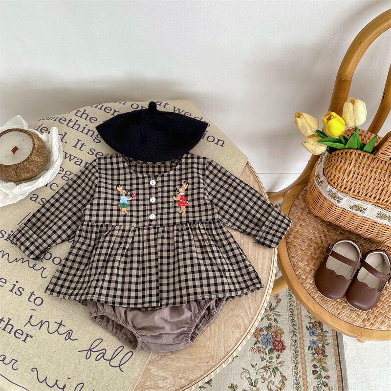 【海外からの取り寄せ】ins 秋新作 ベビー服 女の子 刺繍 セットアップ 上着 ブルマー チェック柄 子供服 可愛い #[ckd1092462_21000]【送料込み】【250907】