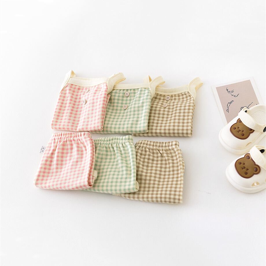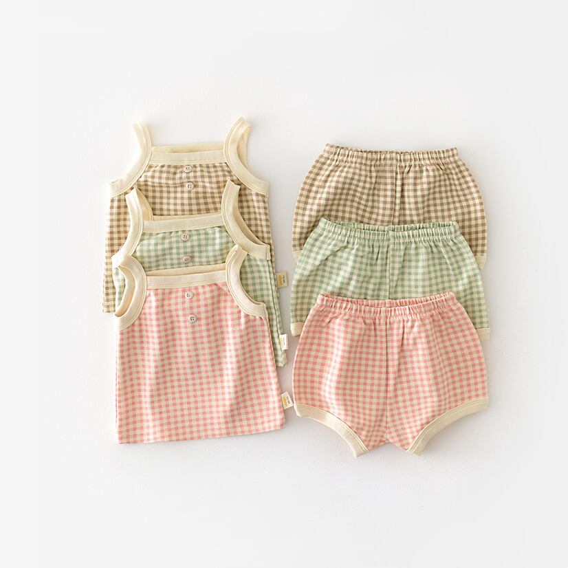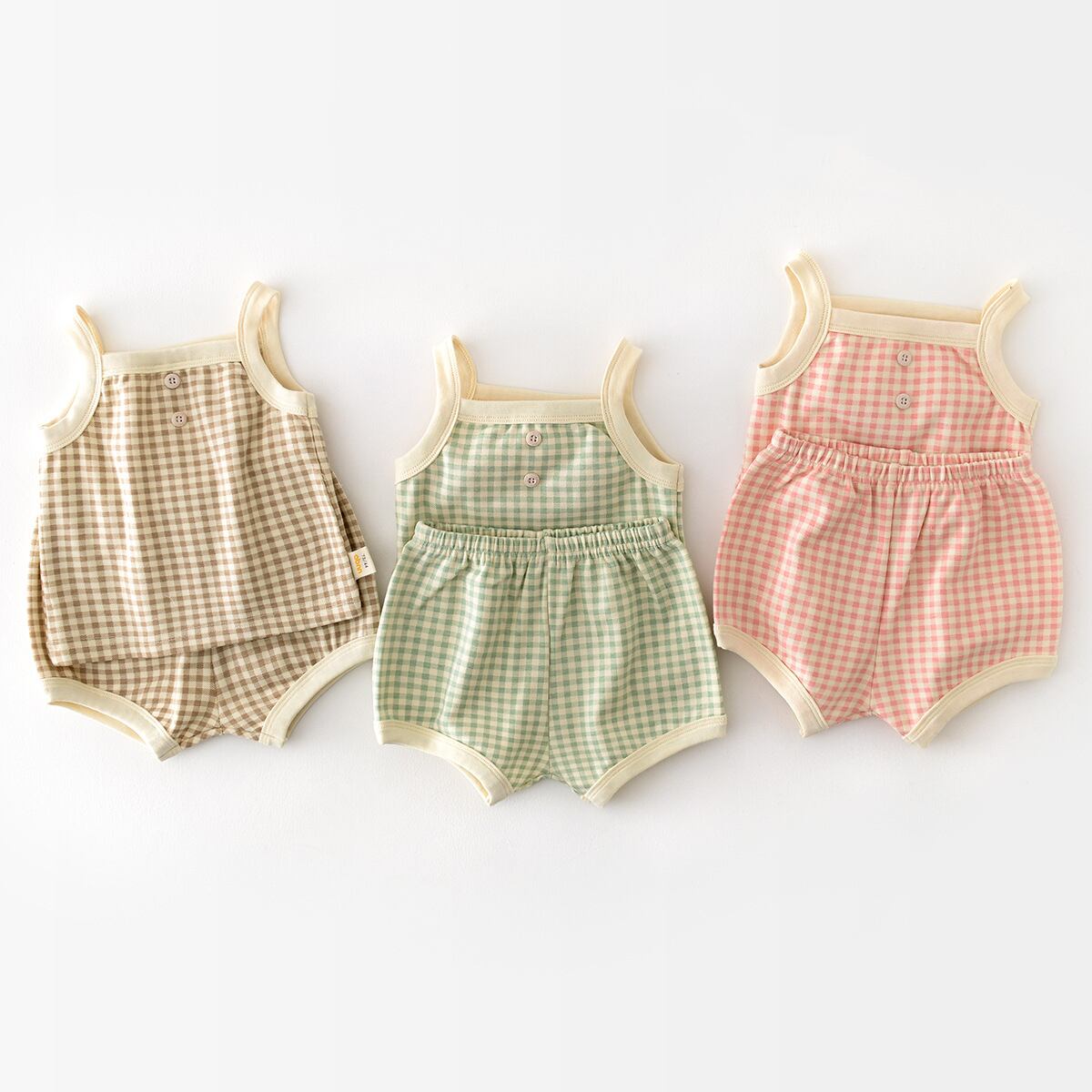 【海外からの取り寄せ】2023夏新作 ベビー服 キャミソール ショートパンツ セットアップ チェック柄 肌着 柔らかい 子供服 #[ckd1091851_14200]【送料込み】【250518】