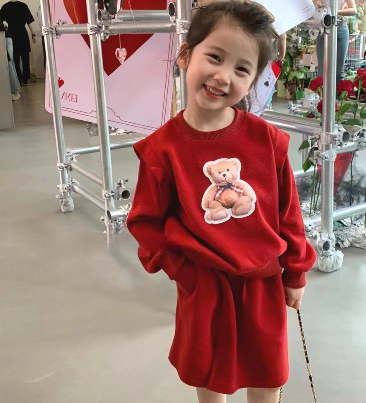 【海外からの取り寄せ】2022秋新作 女の子 子供服 2点セットアップ クマトップス スカート おしゃれ 可愛い カジュアル #[ckd1029139_24700]【送料込み】【250518】