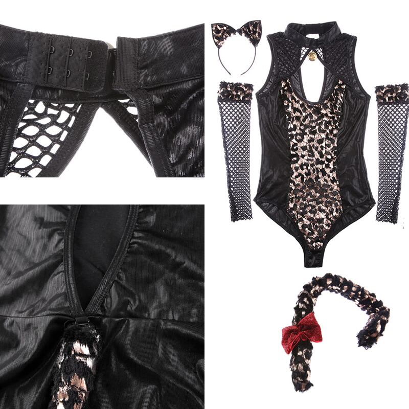 【即納】黒×豹柄 バニーガール服 コスプレ衣装 ハイレグ コスチューム【 #[4188_26000]】【送料込み】【250923】