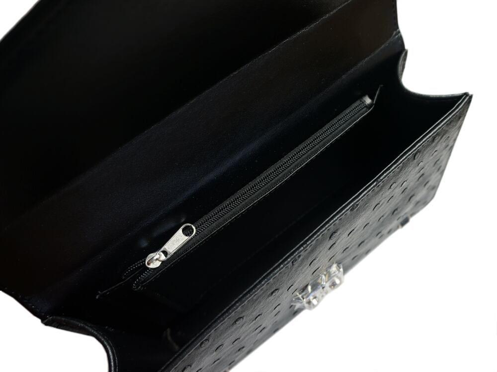 オーストリッチ型押しミニセカンドバッグ No. #[2025ost_35000] ブラック 手提げ大型財布 2色展開【送料込み】【250519】