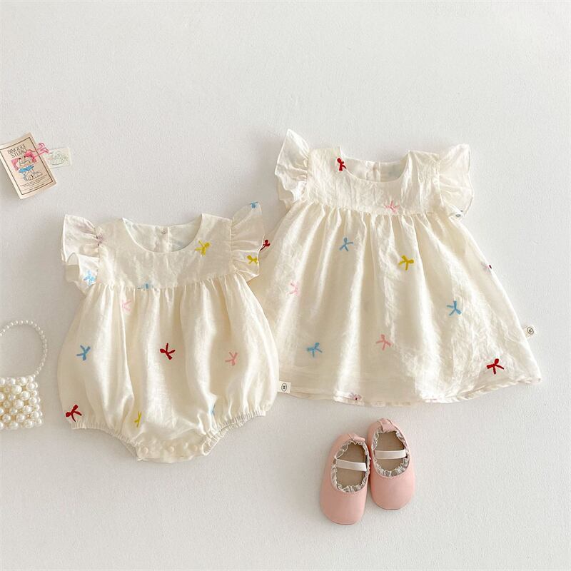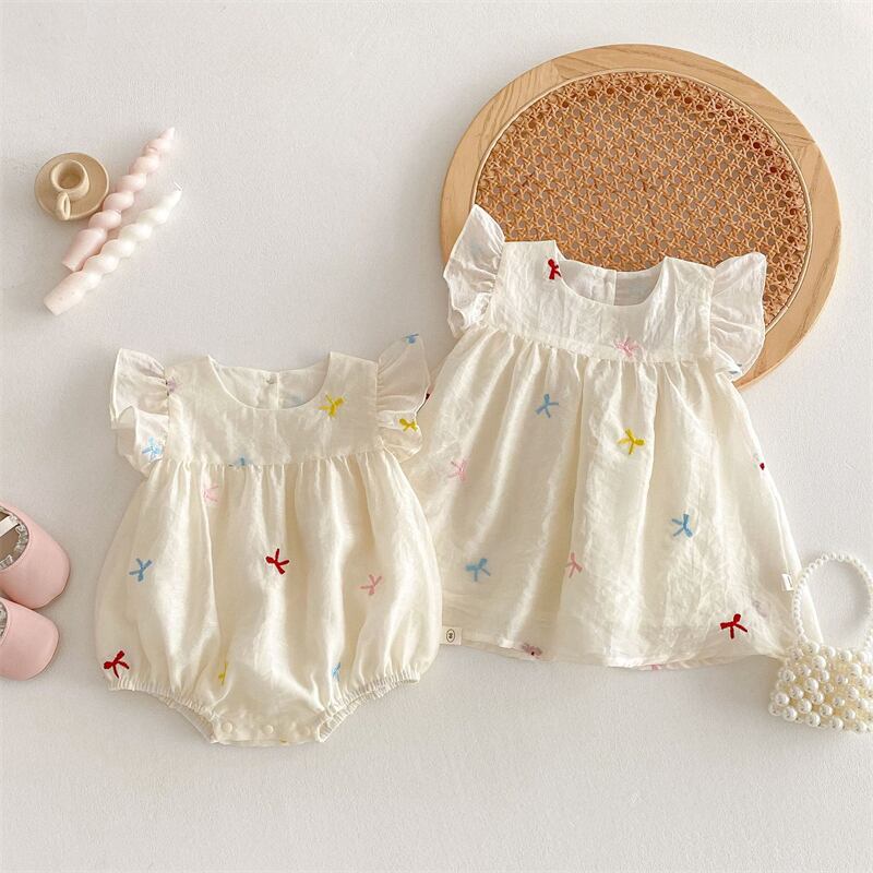 【海外からの取り寄せ】2025夏新作 子供服 姉妹服 選べる2タイプ 刺繍 リボン柄 ロンパース ワンピース 可愛い おしゃれ #[ckd1094624_17000]【送料込み】【250605】