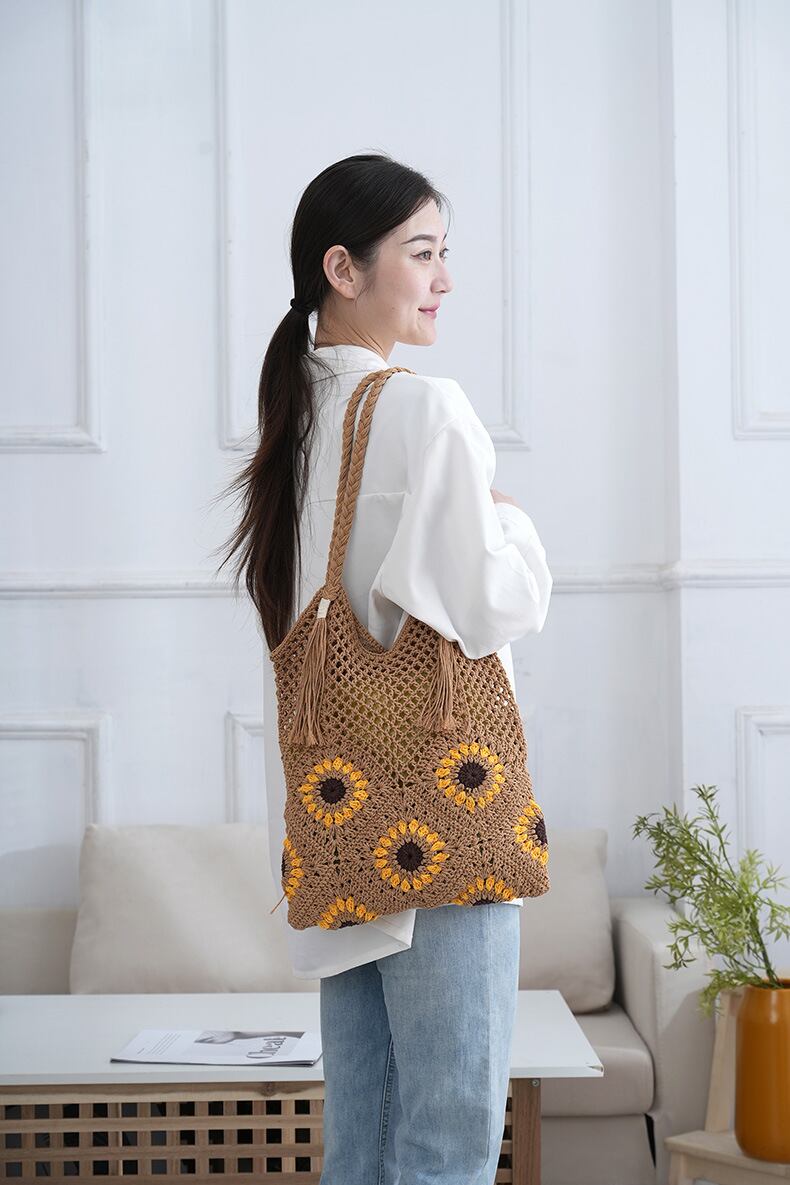 【海外からの取り寄せ】2025新作 トートバッグ 編み込み 花柄 メッシュ ざっくり編み お洒落 大容量 ネットバッグ 夏バッグ 軽量 #[bag1737_25900]【送料込み】【250603】