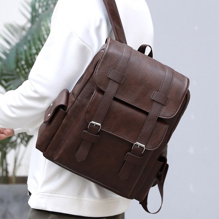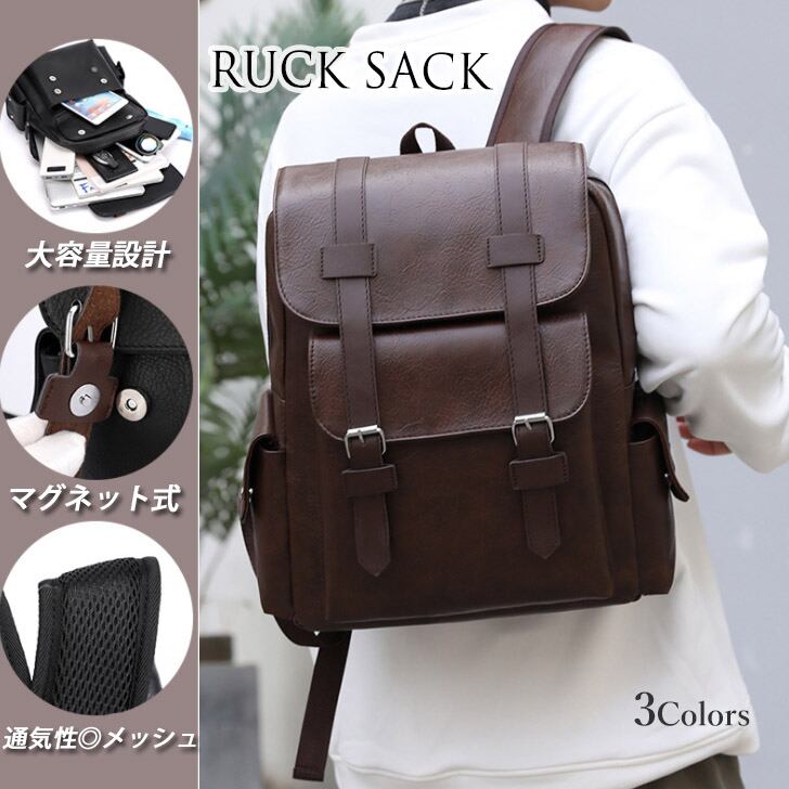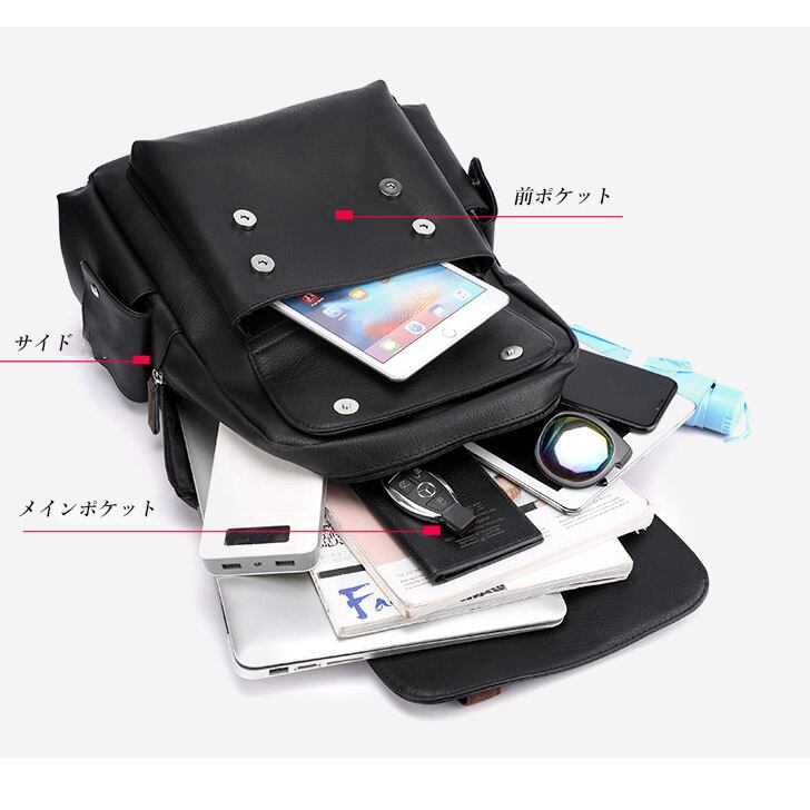 収納スペース充実!合成皮革のリュックサックです。