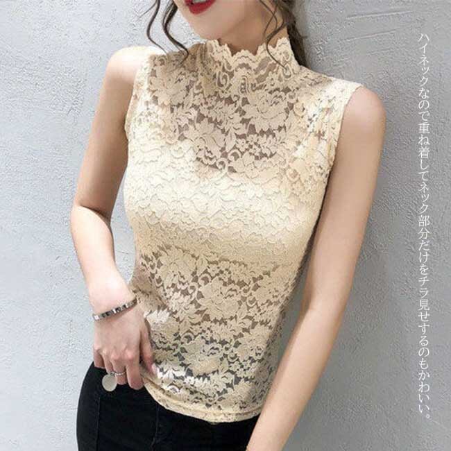 【海外からの取り寄せ】2023新作 レディース シャツ タンクトップ ハイネック 総レース 透け感 春 夏 秋 ファッション #[shirt377_8800]【送料込み】【250525】