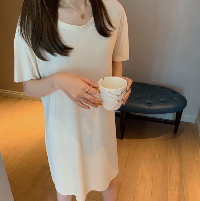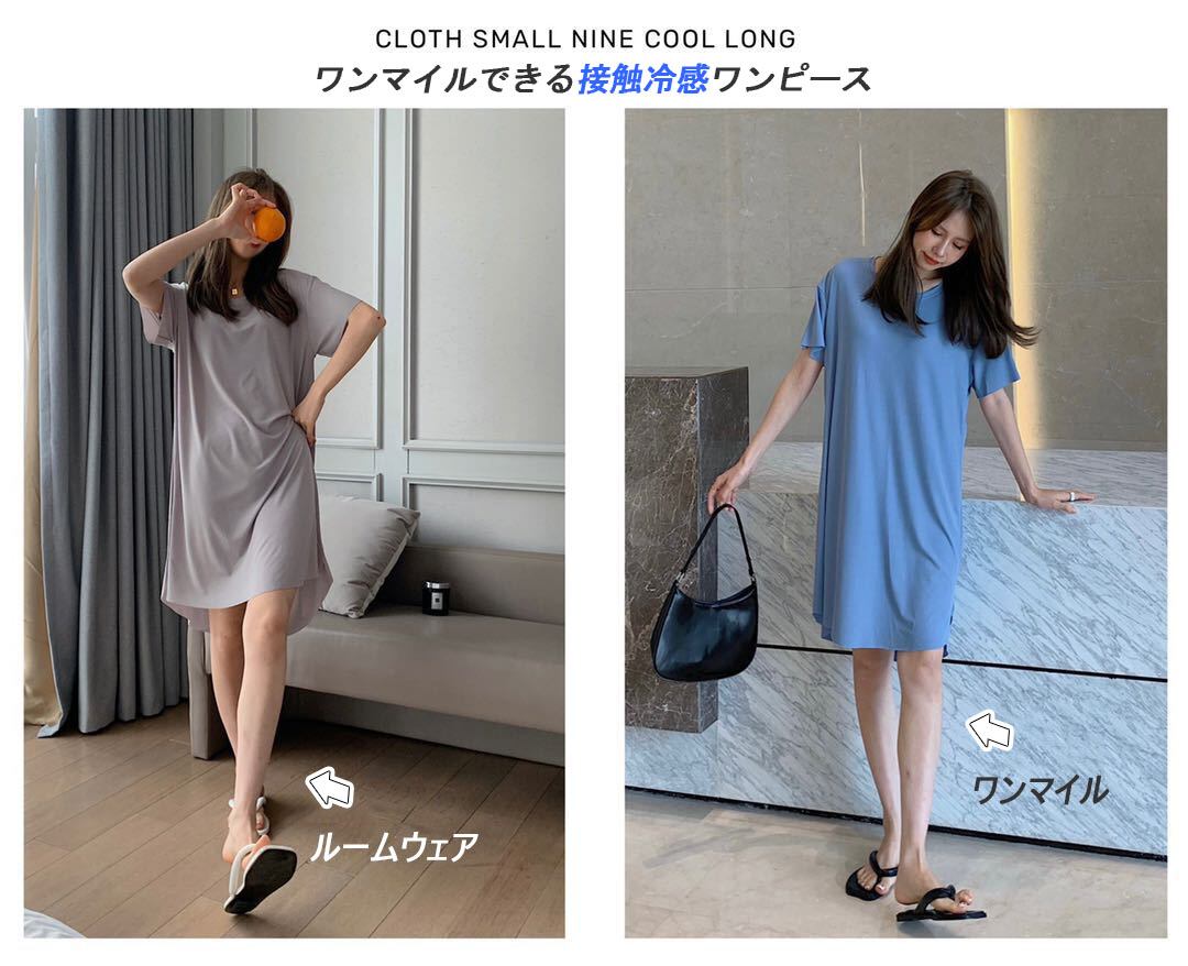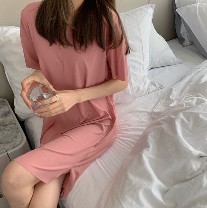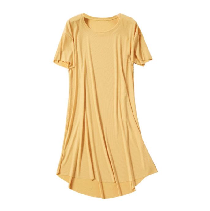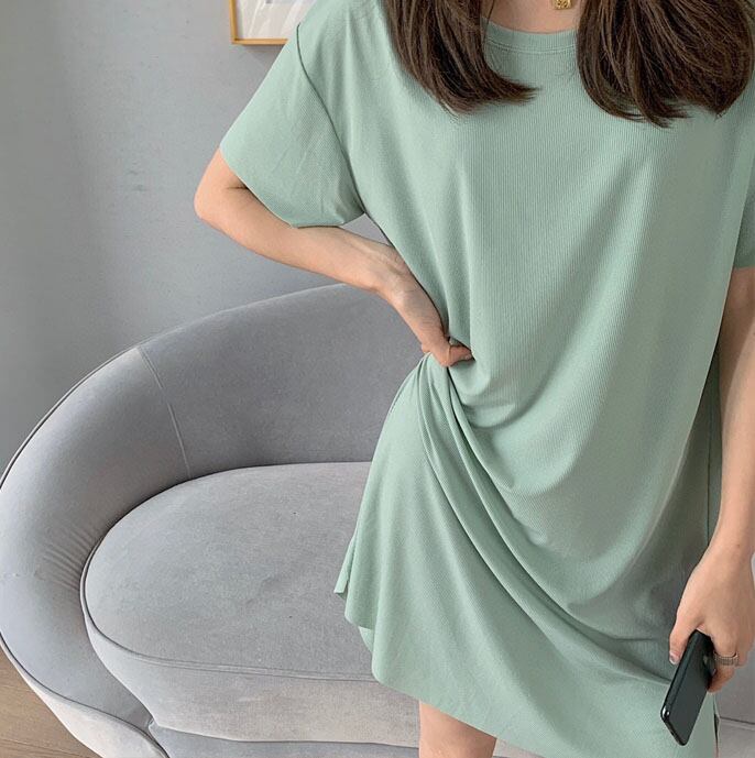 【海外からの取り寄せ】2021新作 トレンド リブ 半袖Tシャツ 無地 トップス ルームウェア ワンピース ワンマイル アイスシルク #[onepiece236_5800]【送料込み】【250524】