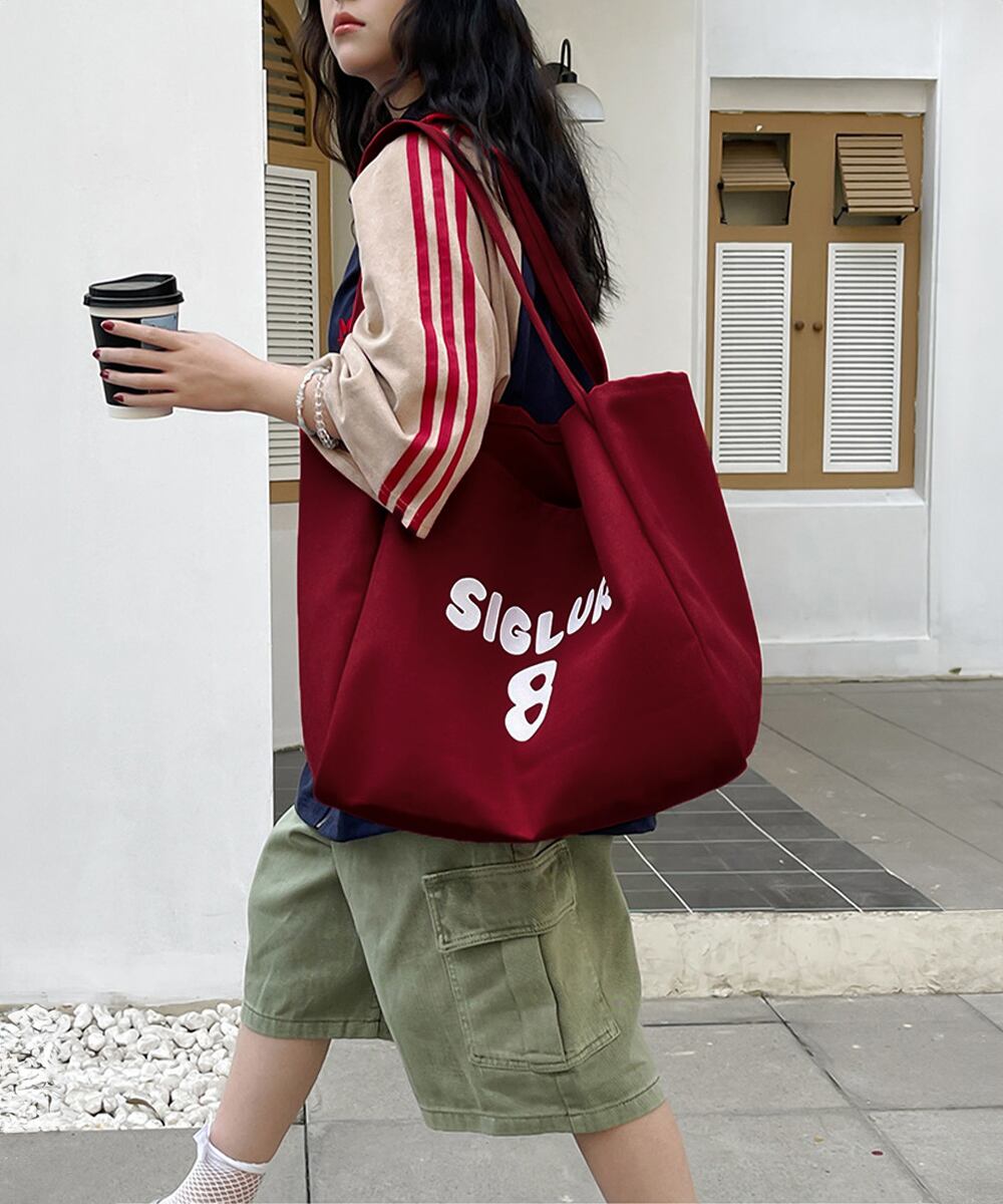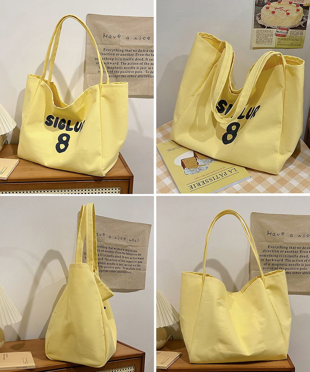 韓国っぽ手提げかばん カジュアルバッグ おしゃれ マチありBAG ビッグロゴ入り A4サイズ 通学通勤 大きめ帆布かばん