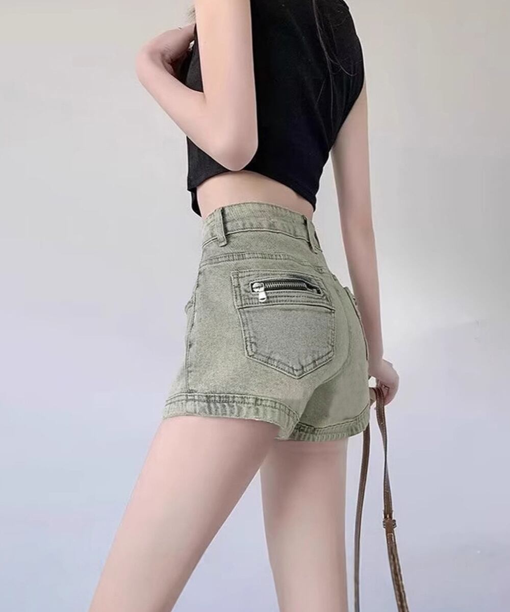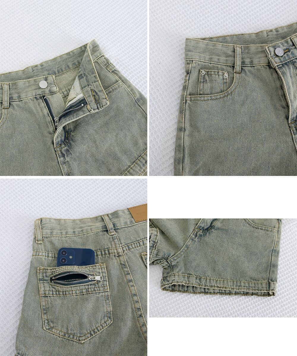 ヴィンテージ風デニムショーパン 美脚脚長ジーパン お洒落アメカジホットパンツ 細見え美尻ジーンズ レトロ短パンオルチャン