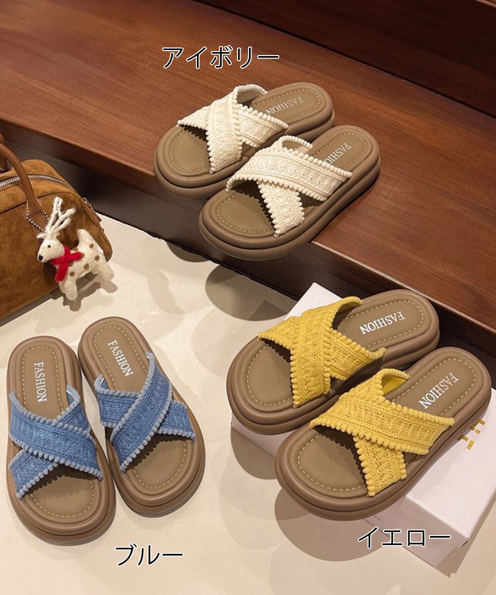 【日本倉庫からの発送】 厚底サンダル レディース クロスサンダル #[6JLONG-008_20100]【送料込み】【250915】