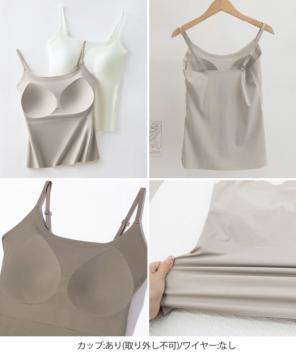 Uネックキャミソール シームレスキャミレディース ノンワイヤー ベーシック肌着 涼やか 薄手 ブラ一体型インナーウェア夏