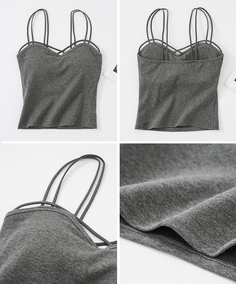 ブラトップ レディース クロスストラップキャミソール 大人可愛い Wスパゲッティショルダー インナートップス 韓国風肌着