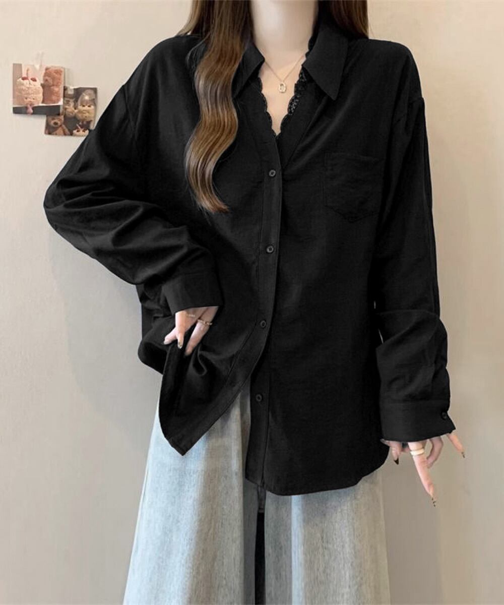 【日本倉庫からの発送】 シャツブラウス長袖 レース襟シャツ春秋夏 #[84DLV-016_23100]【送料込み】【250530】
