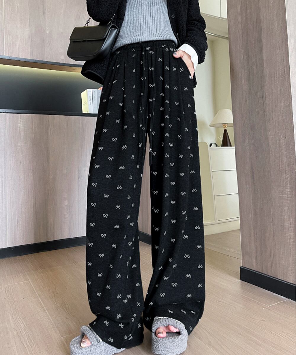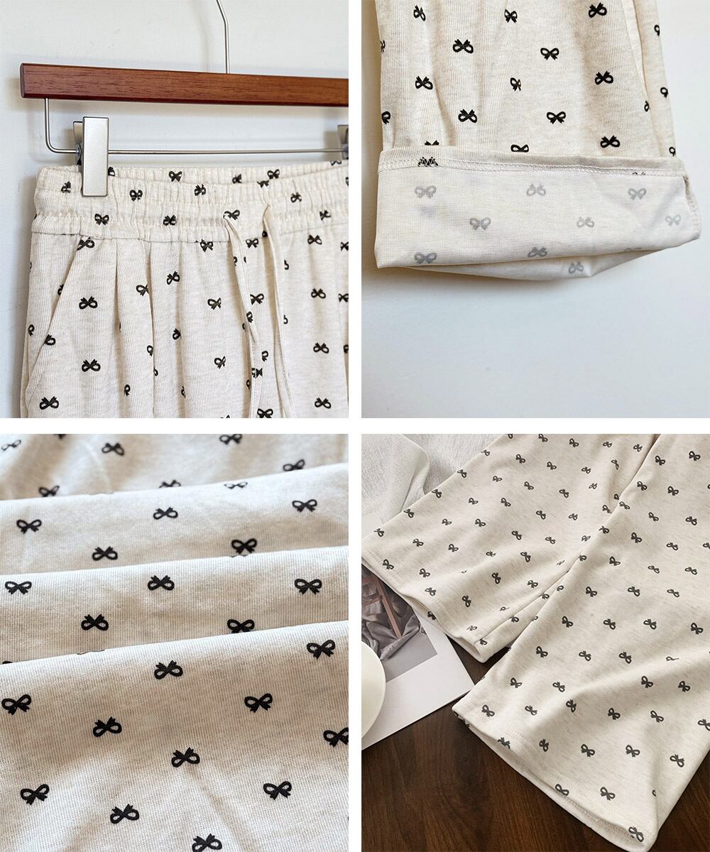 小さなリボン柄がとても可愛いリラックスパジャマパンツです。