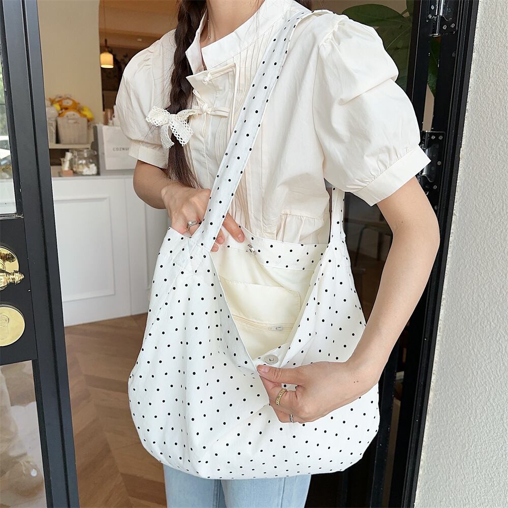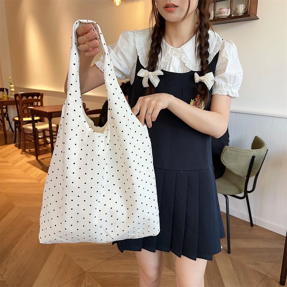 【海外からの取り寄せ】2024新作 レディース ショルダーバッグ トートバッグ 肩掛け ドット柄 水玉 エコバッグ 軽量 軽い 折り畳み #[bag1475_9900]【送料込み】【250529】