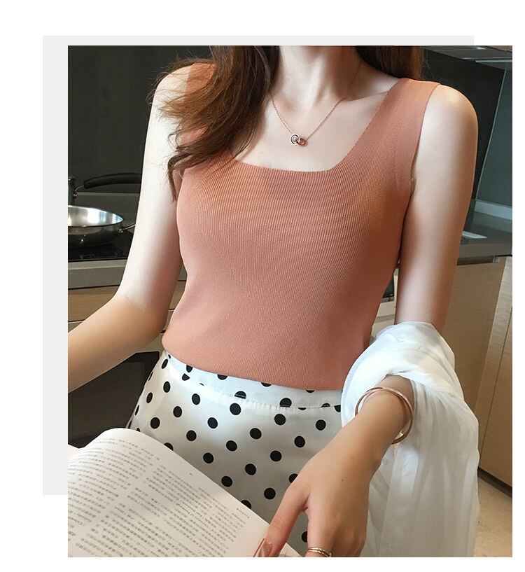 【海外からの取り寄せ】2023新作 レディース ニット 冷感 タンクトップ ノースリーブ インナー 伸縮性 大人 無地 通勤 スクエア #[tops248_5800]【送料込み】【251029】