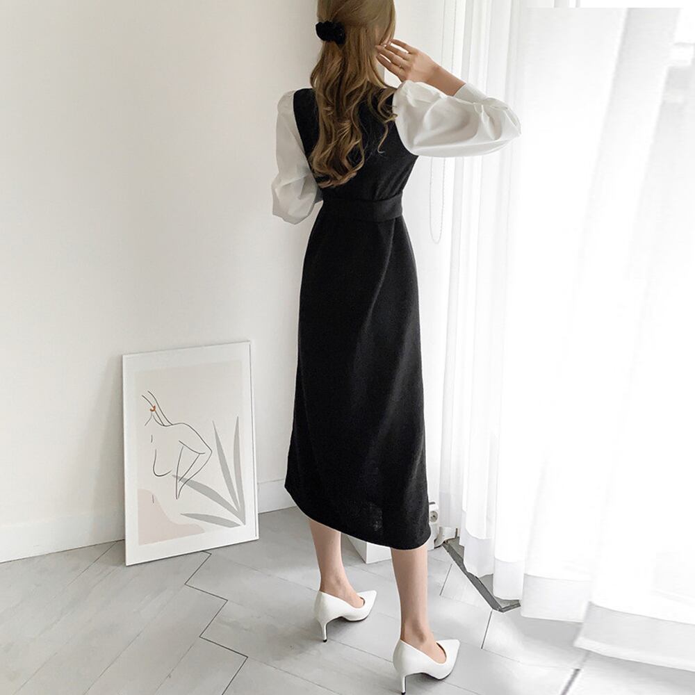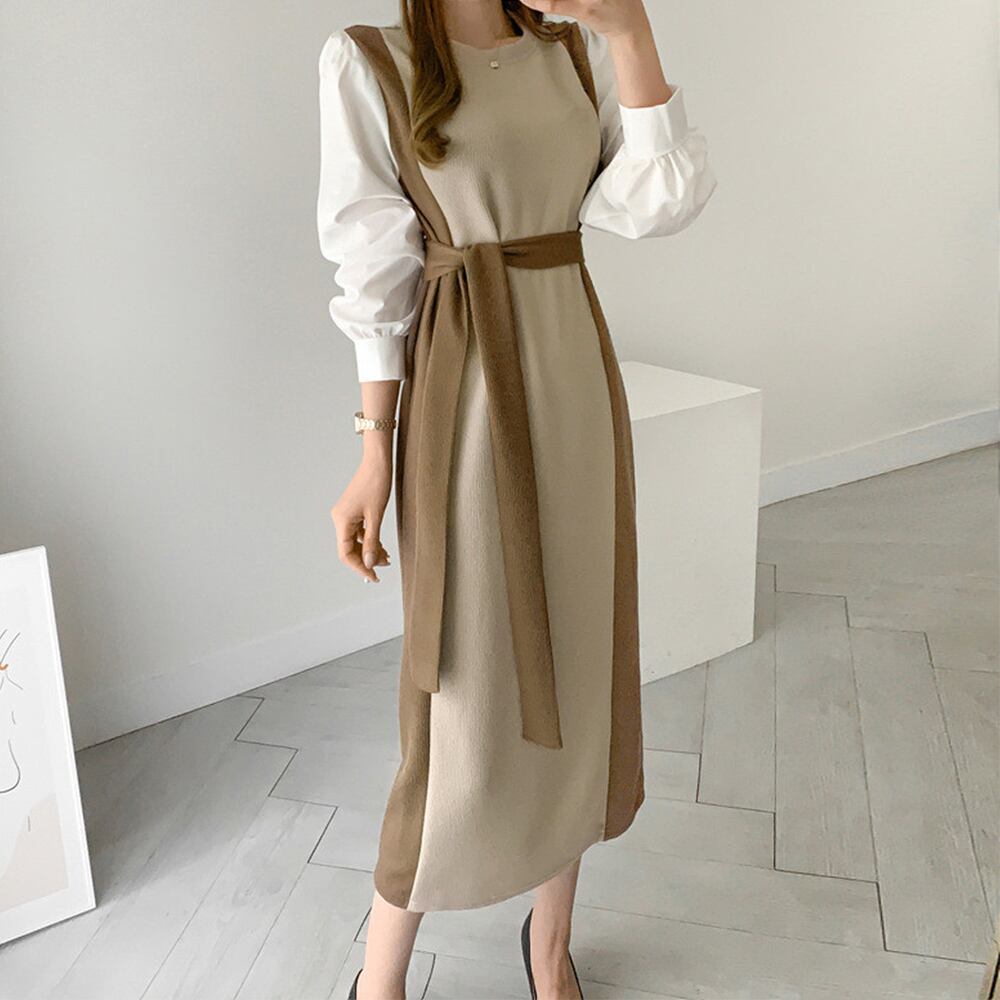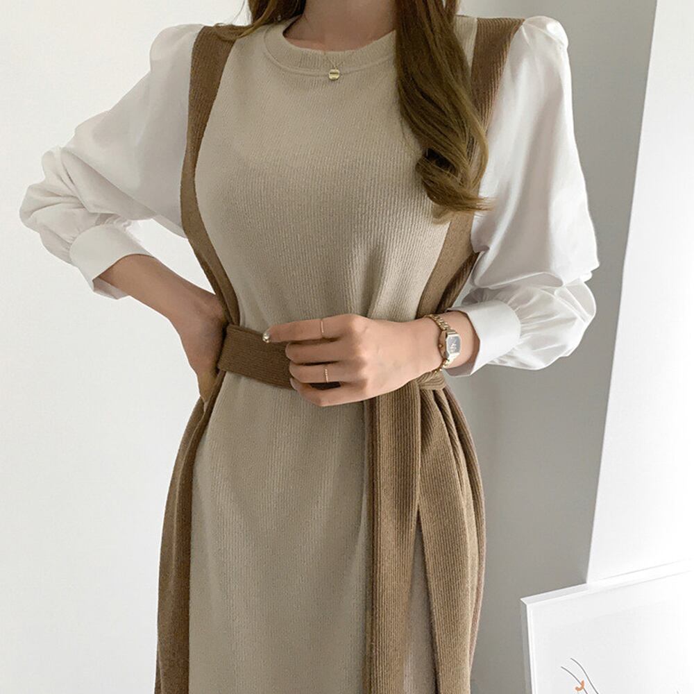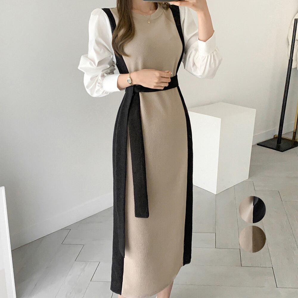 【日本倉庫からの発送】 袖切り替え ニットワンピース ロング配色 #[2YTONG-003_37500]【送料込み】【250923】