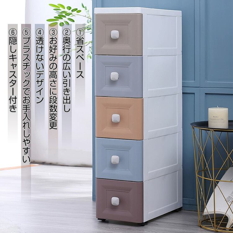 収納ケース スリム 5段 キャスター付 プラスチック 引き出し 収納ボックス 棚 タンス チェスト #[ny466_34100]【送料込み】【250525】