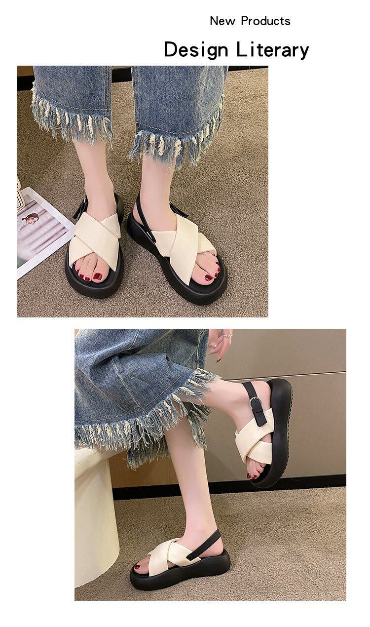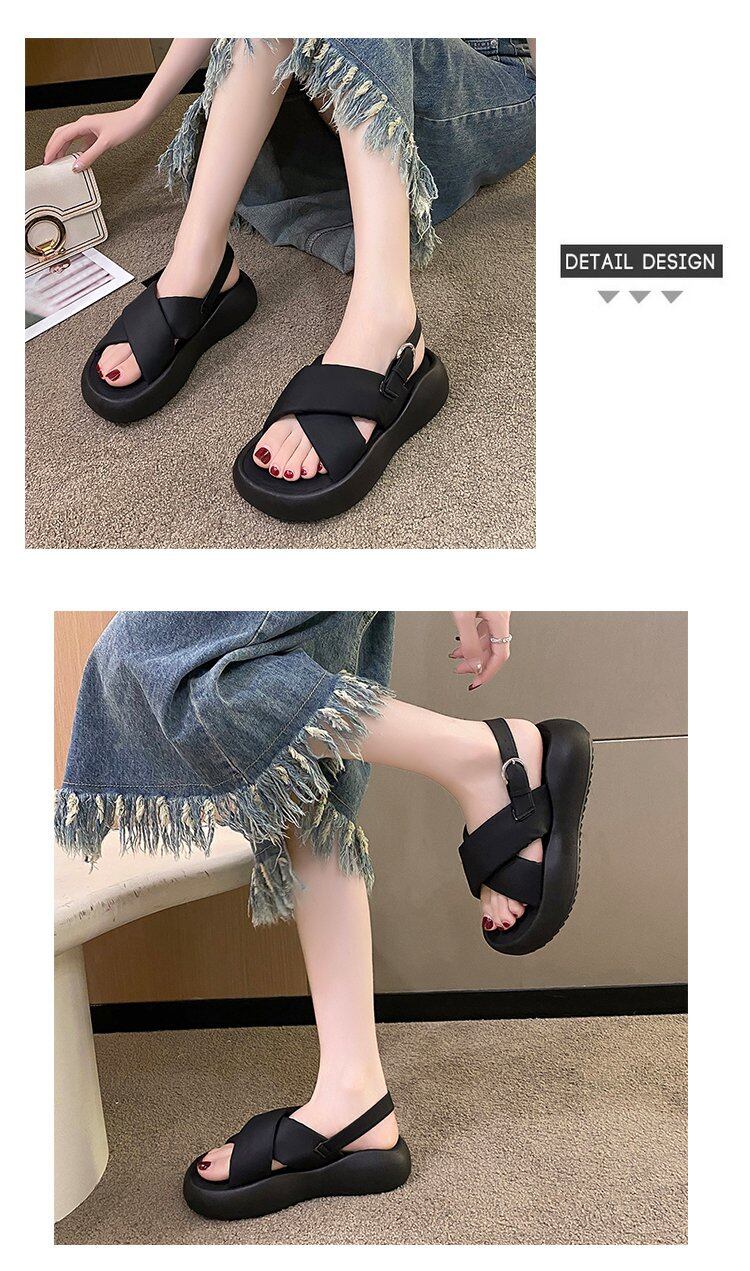 【海外からの取り寄せ】2023新作 レディース サンダル 厚底 美脚 脚長 夏 ソフト ブラック シンプル 黒 クロス バックストラップ #[sandal452_17800]【送料込み】【250525】