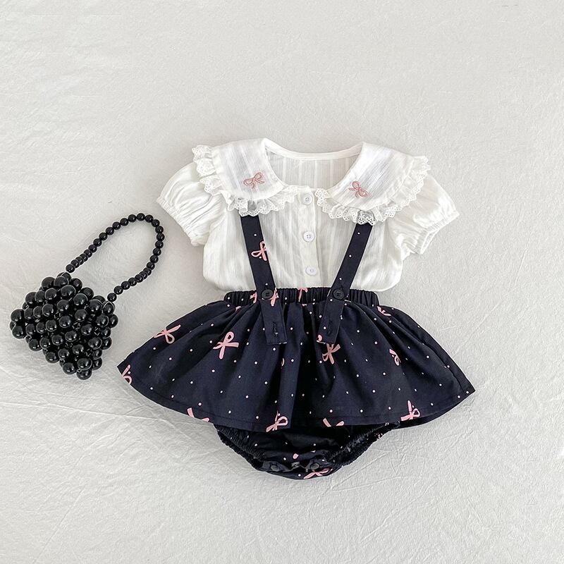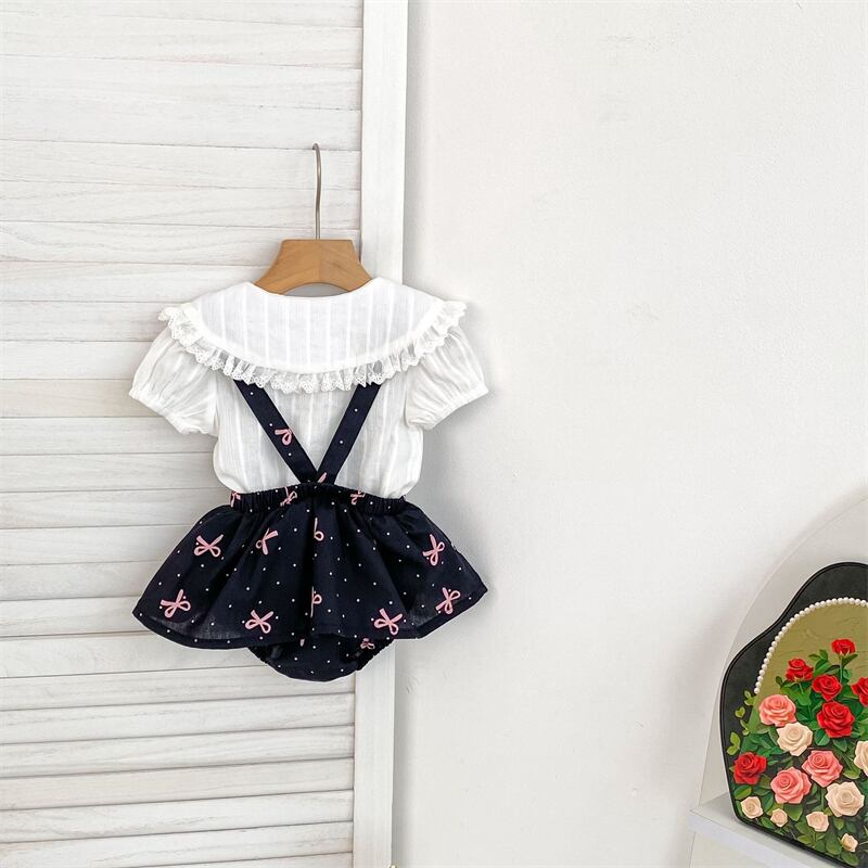 【海外からの取り寄せ】2025夏新作 ベビー服 女の子 セットアップ 半袖シャツ サロペットロンパース 可愛い リボン 子供服 #[ckd1094637_24500]【送料込み】【250727】