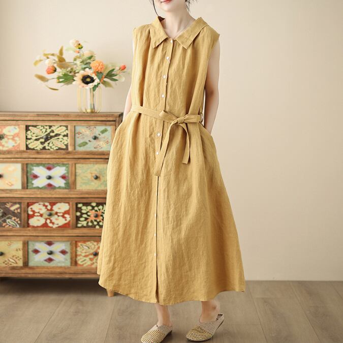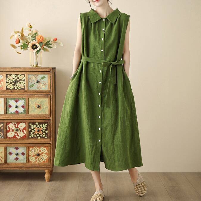 【海外からの取り寄せ】2025新作 レディース ワンピース ロング丈 着痩せ 綿麻 ノースリーブ 襟 ゆったり 体型カバー ボタン付き #[onepiece436_29800]【送料込み】【250603】