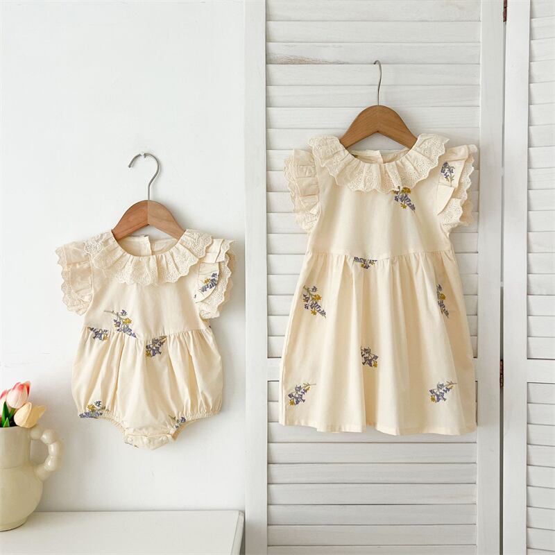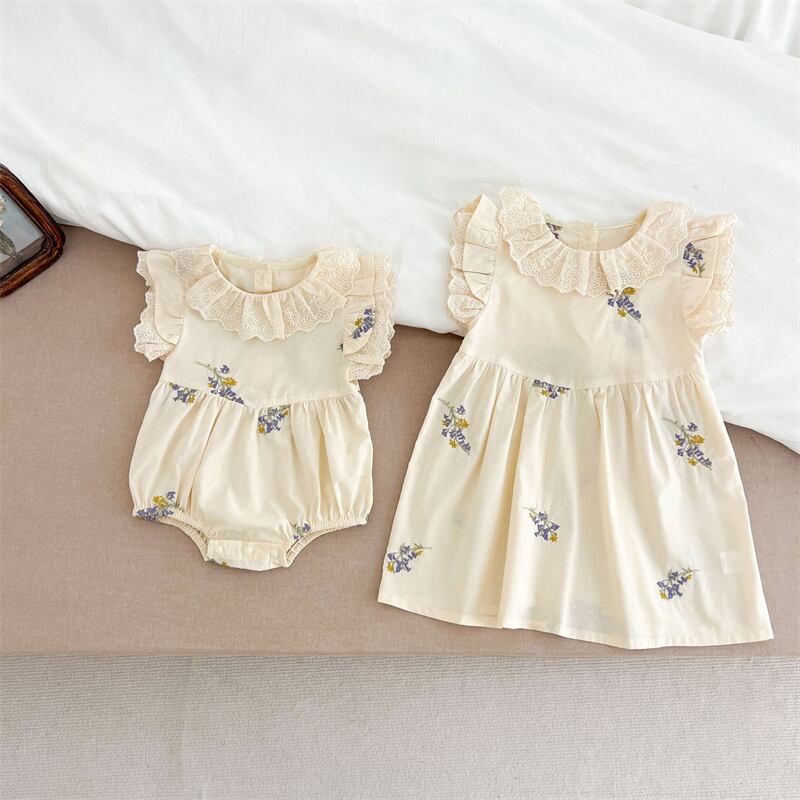 【海外からの取り寄せ】2025夏新作 子供服 姉妹服 選べる2タイプ レース ラッフルカラー ロンパース ワンピース 可愛い #[ckd1094645_19100]【送料込み】【250629】