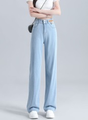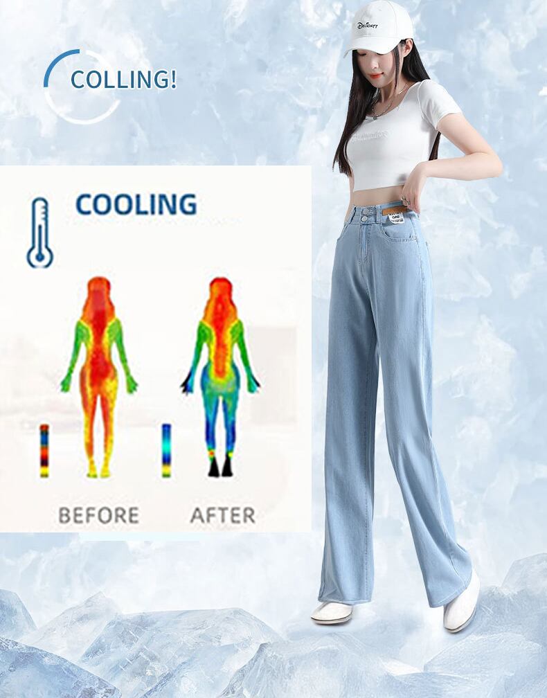 【海外からの取り寄せ】 2025新作 レディース センタープレスデニム 冷感 ひんやり ハイウエスト ストレート ワイド #[pants299_23800]【送料込み】【250603】