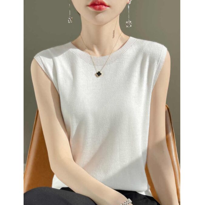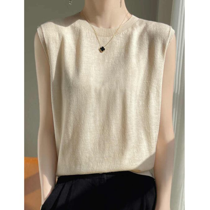 【海外からの取り寄せ】2025新作 レディース ニット トップス 通気性 透け感 ノースリーブ シアートップス 着回し #[tops613_7800]【送料込み】【250607】