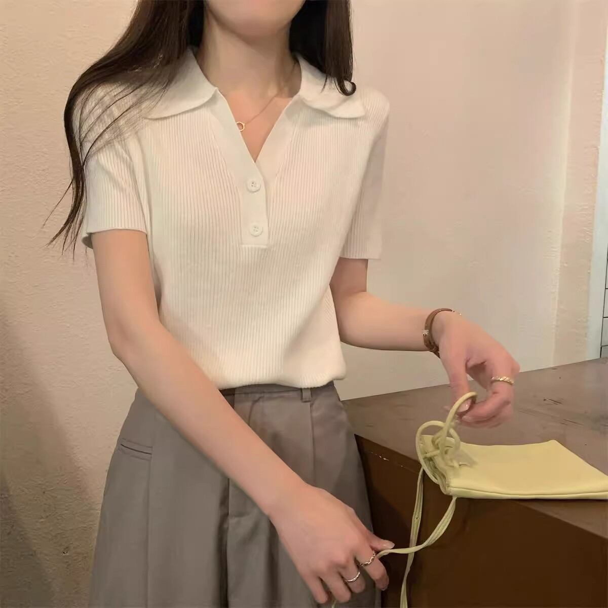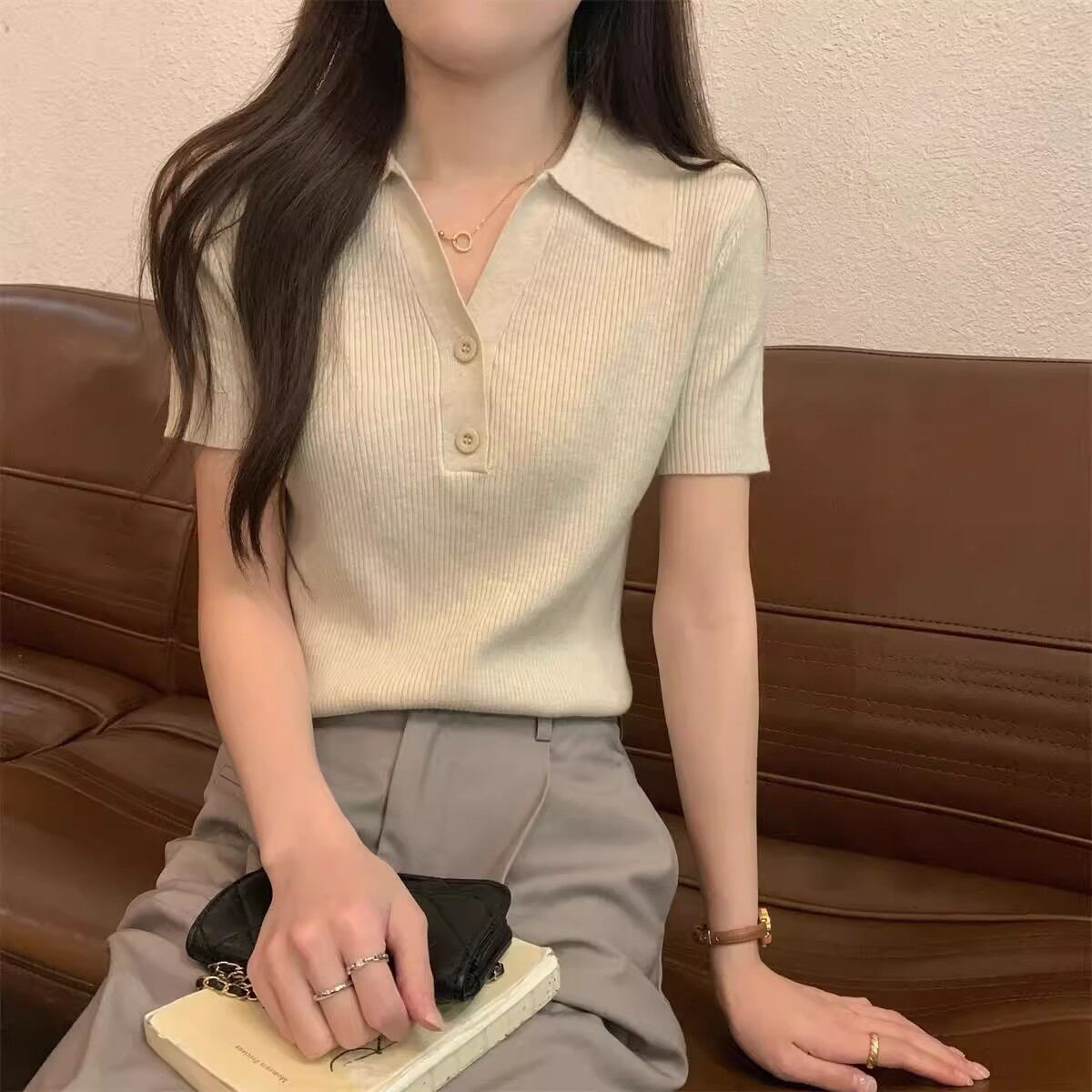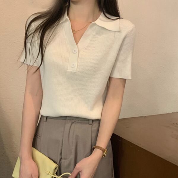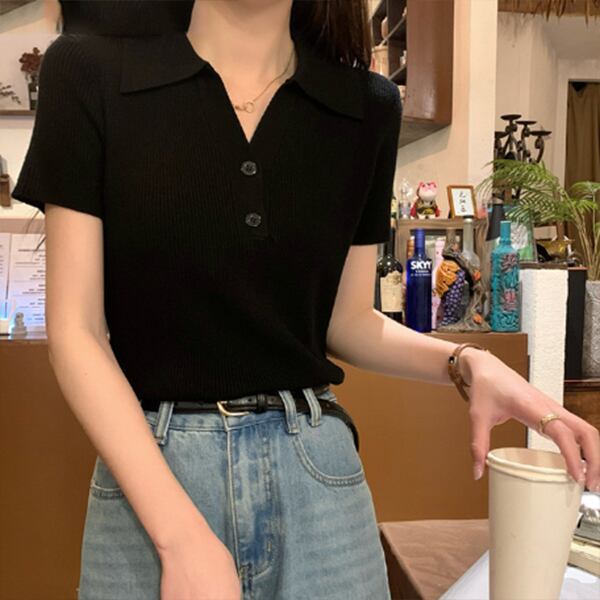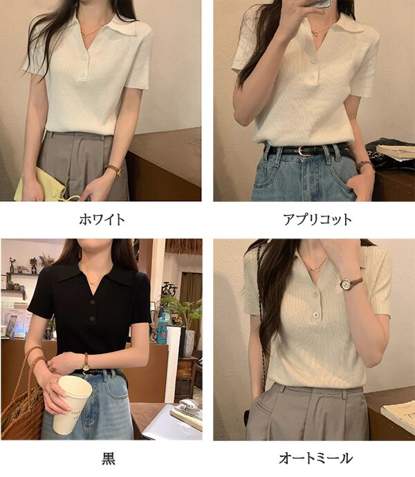 【海外からの取り寄せ】 2025新作 レディース リブニット 襟付きニット 半袖 トップス ポロシャツ 半袖ニット #[shirt497_14800]【送料込み】【250604】