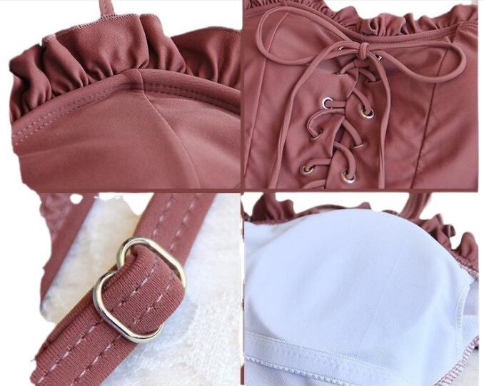 落ち着いた大人の色調にコントラストされたビキニ水着3点セット