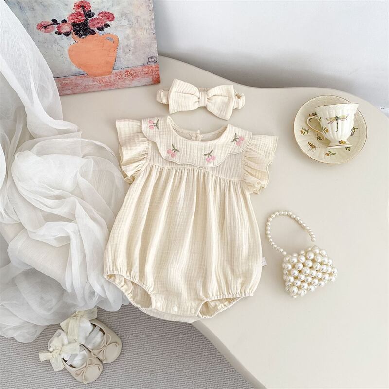 【海外からの取り寄せ】2025夏新作 ベビー服 ヘアバンド付き 刺繍 花柄 ロンパース 女の子 可愛い おしゃれ 子供服 #[ckd1094656_17700]【送料込み】【250727】