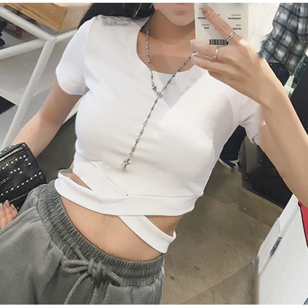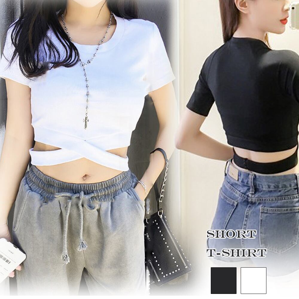 【日本倉庫からの発送】 へそ出し トップス レディース 半袖 tシャツ 無地 カットソー ショート丈 #[WUH-046_8100]【送料込み】【250710】