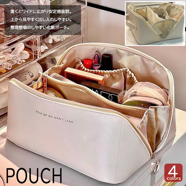 ・各種化粧品や日用品の収納が賢くできる大容量ポーチ。