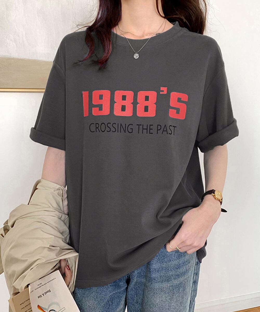 レディース 韓国 ラウンドネック カットソー 英字ロゴT 着やせ プルオーバー 大人女性 カジュアル トップス Tシャツ