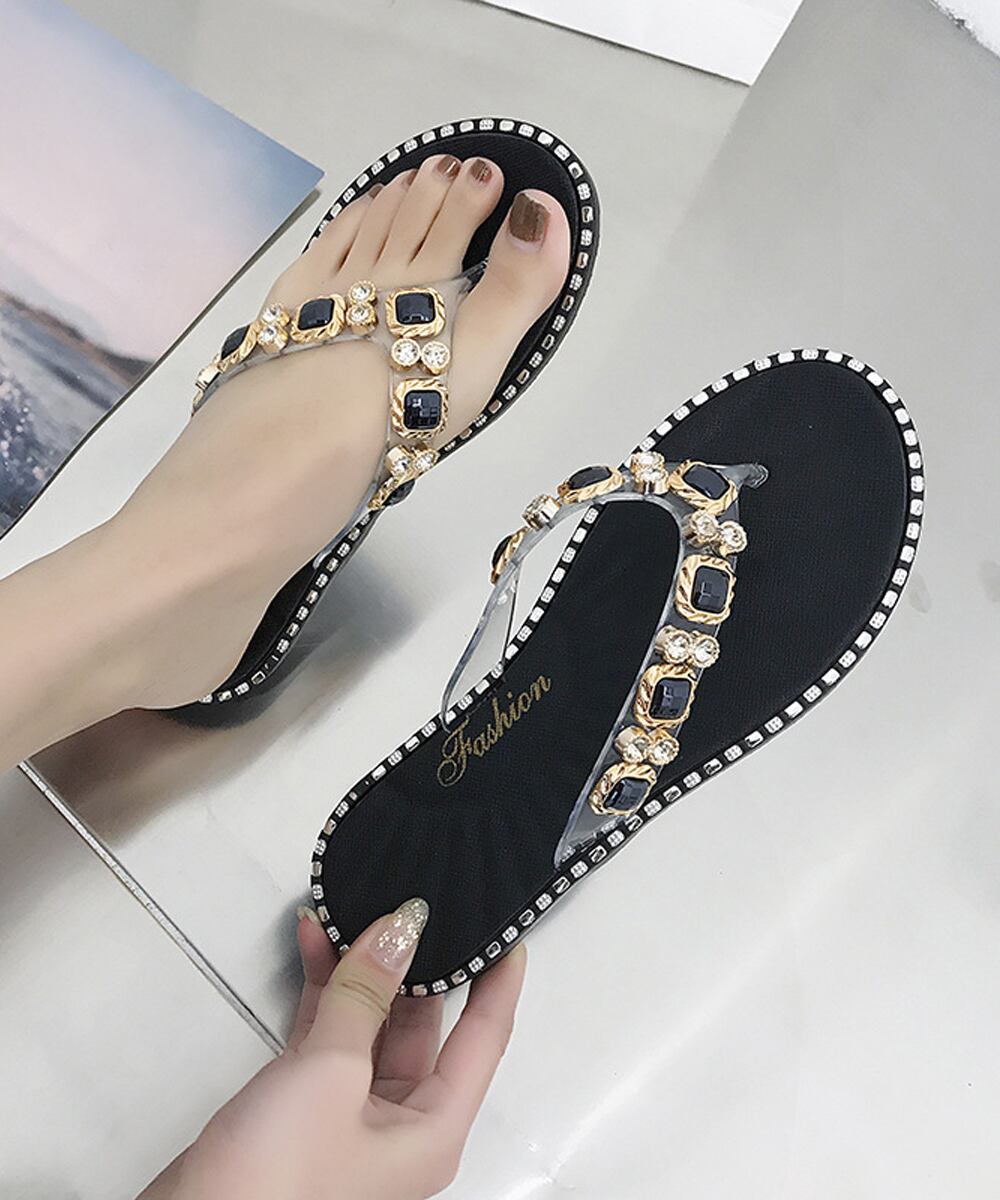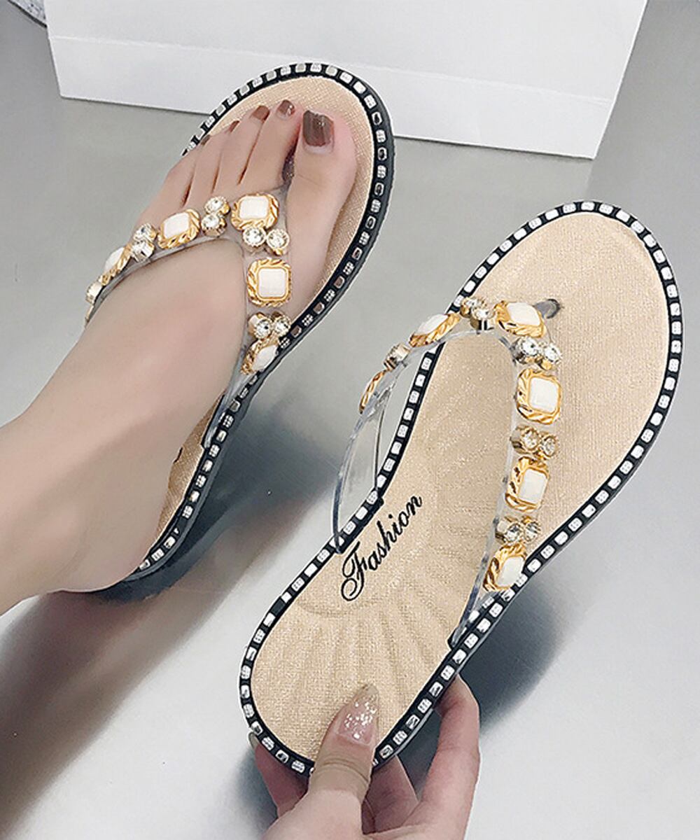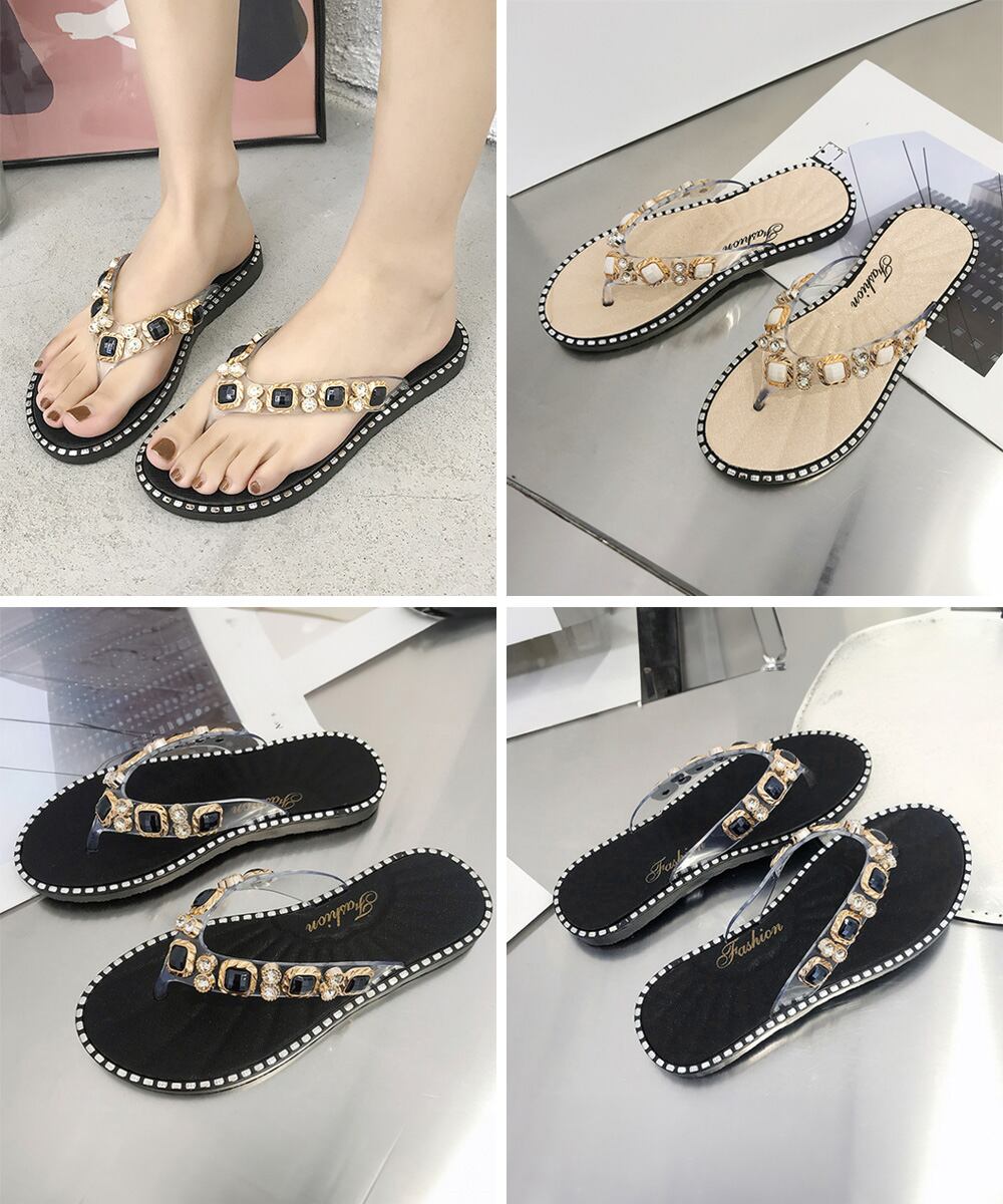 韓国風ぺたんこサンダルきれいめ 歩きやすいサンダル レディース 疲れないラインストーンサンダル 痛くないフラットシューズ