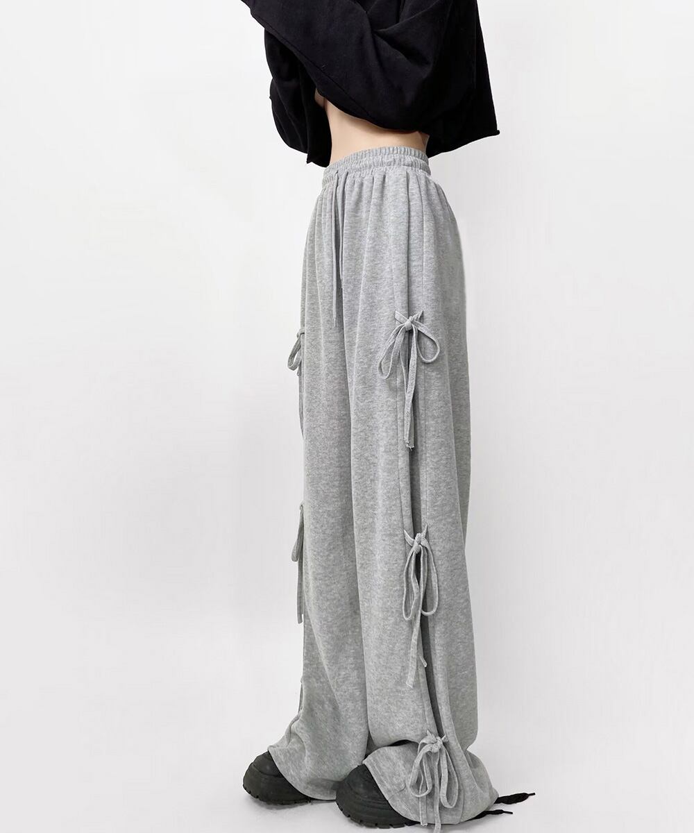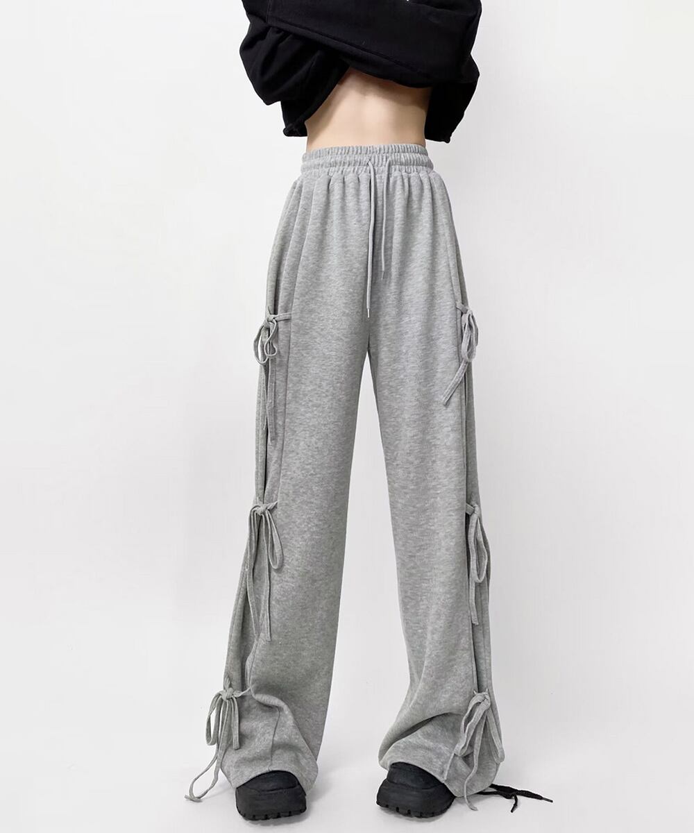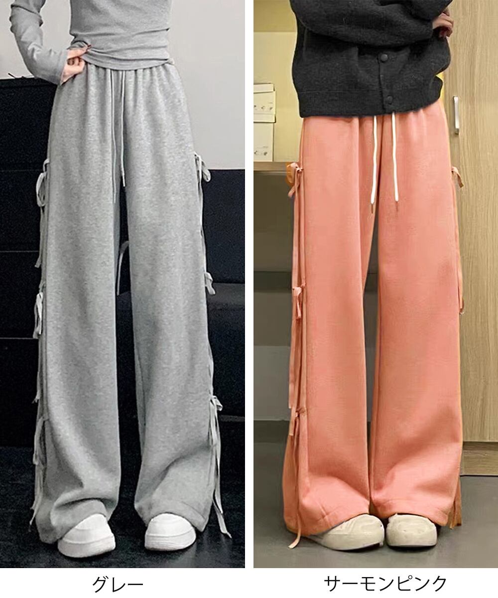 【日本倉庫からの発送】 スウェットパンツサイドリボンワイドパンツ #[84DAIW-006_23100]【送料込み】【251010】