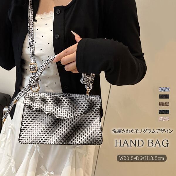 洗練されたモノグラムデザイン ワンハンドルハンドバッグ